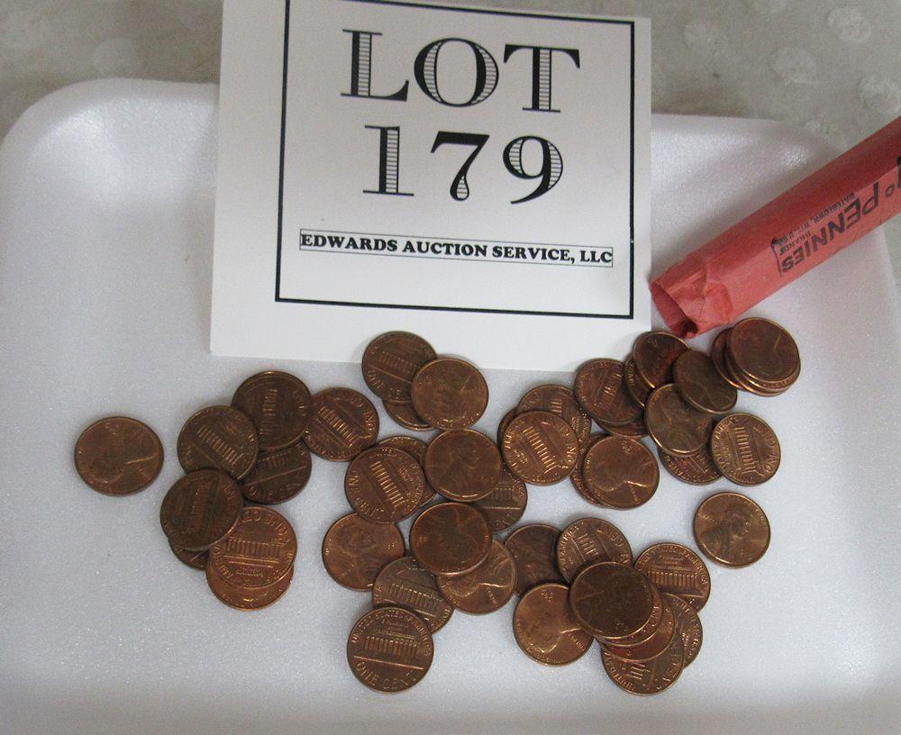 Roll 1969 D US Pennies, XF-AU
