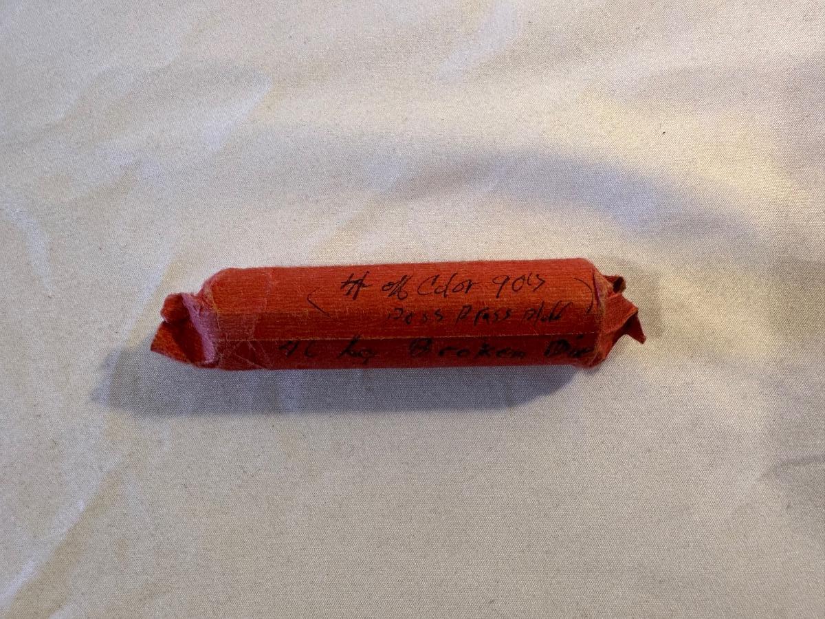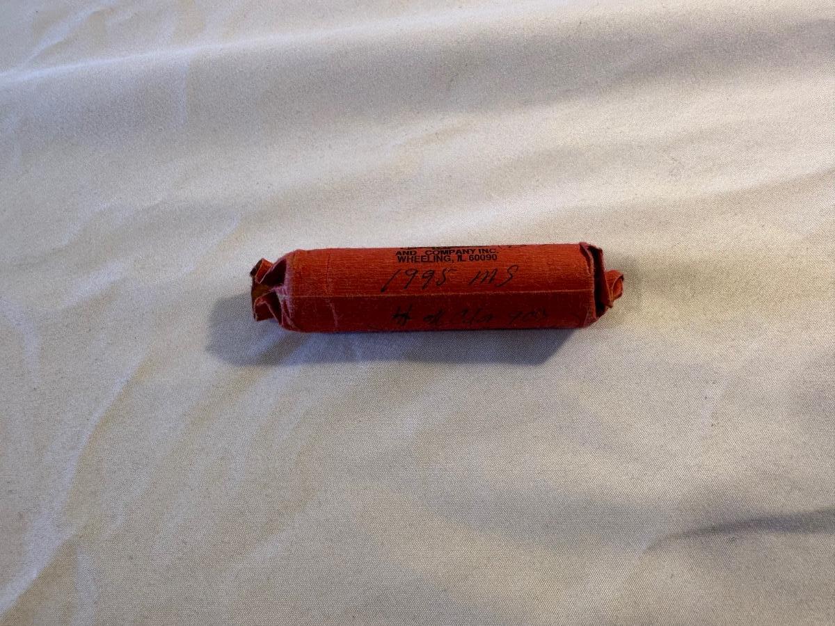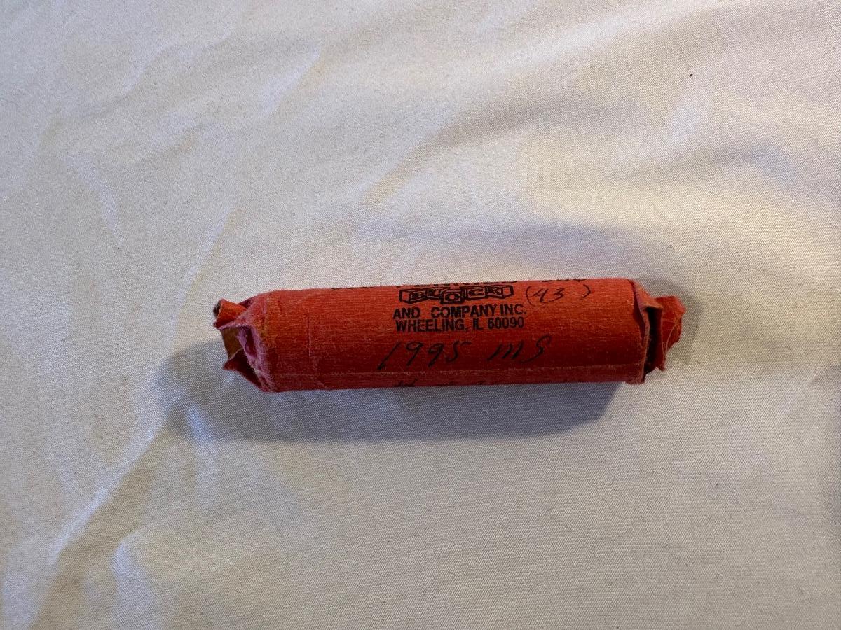 ROLL OF 1995 PENNIES - 46 WITH LARGE BROKEN DIE AND 4 POSSIBLE BRASS COLORED COINS