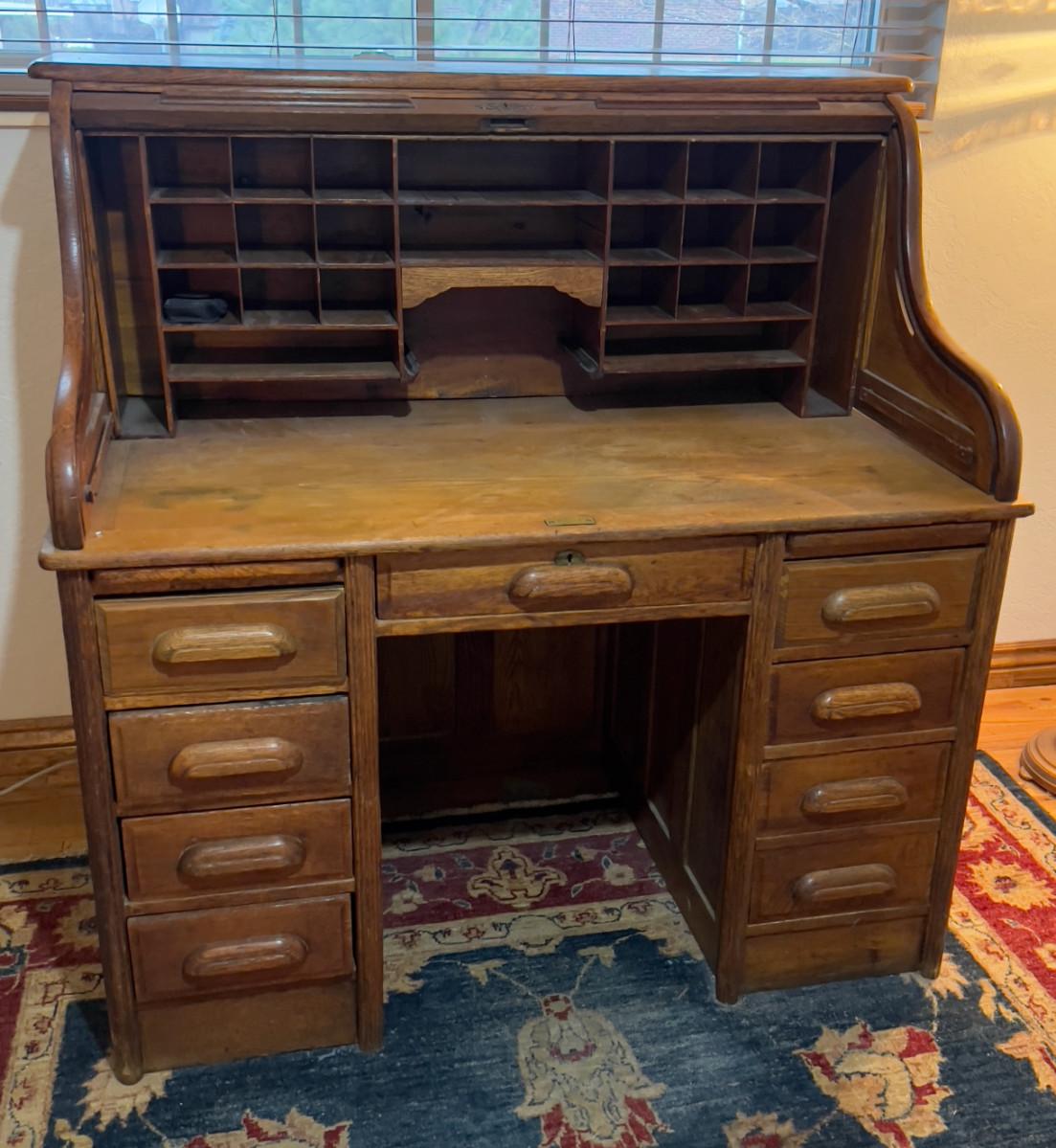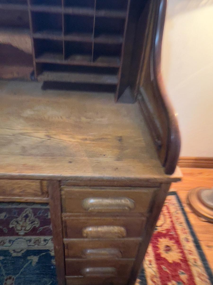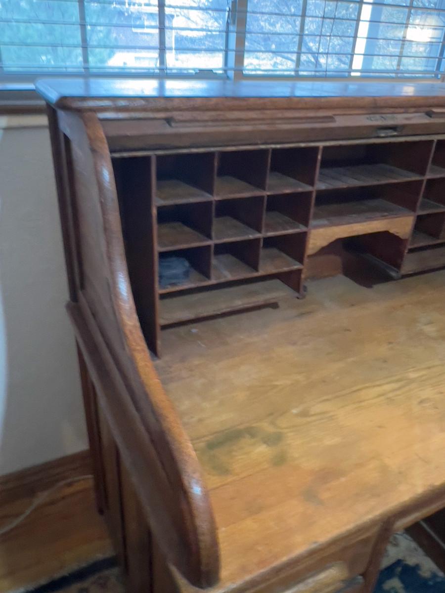 The Roll Top will NOT Roll down so sold as is!!! BRING HELP it is up Stairs and will need to be moved outside. 30 x 48 x 50" Tall