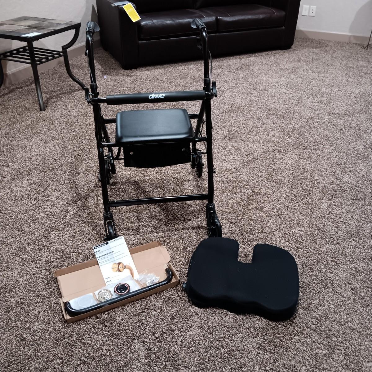 ROLLATOR/4 WHEEL WALKER W/HAND BRAKES, NEW SHOWER GRAB BAR