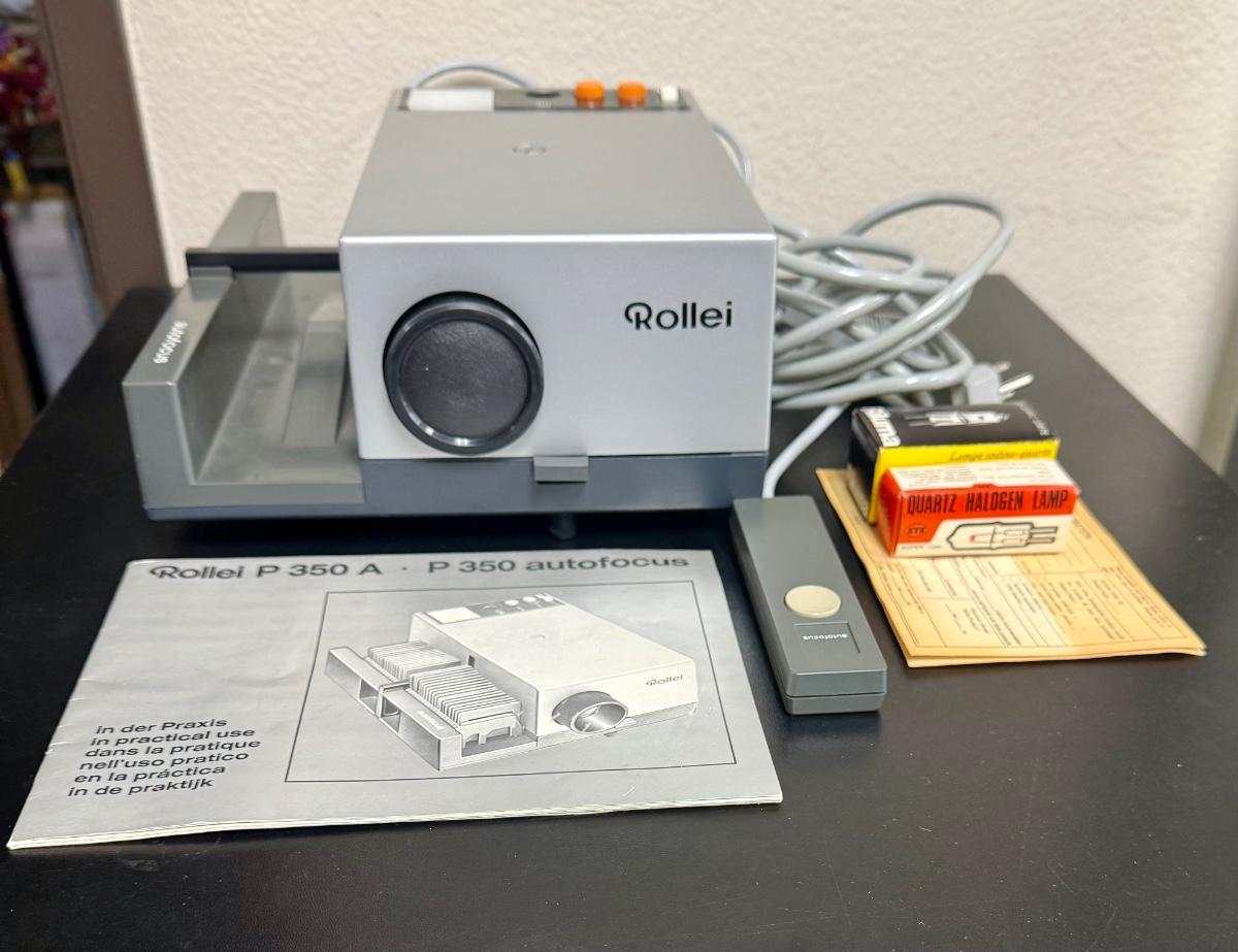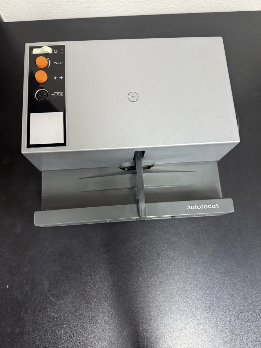 Very good, near new condition. Includes user manual, corded slide-advance button, and 2 extra bulbs.