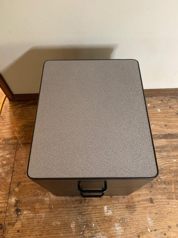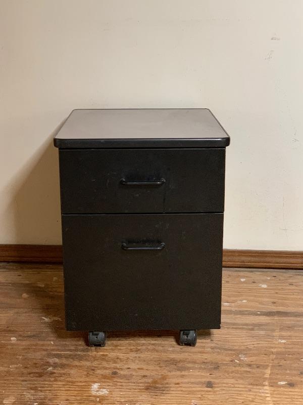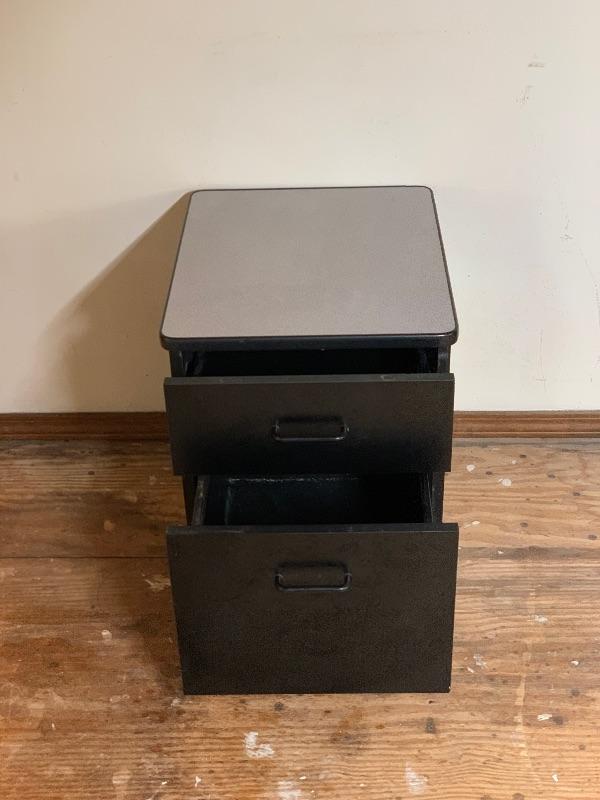 Rolling Black Wood Filing Cabinet with Formica Top