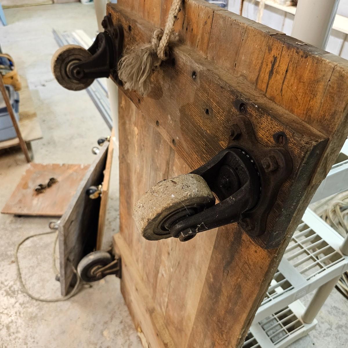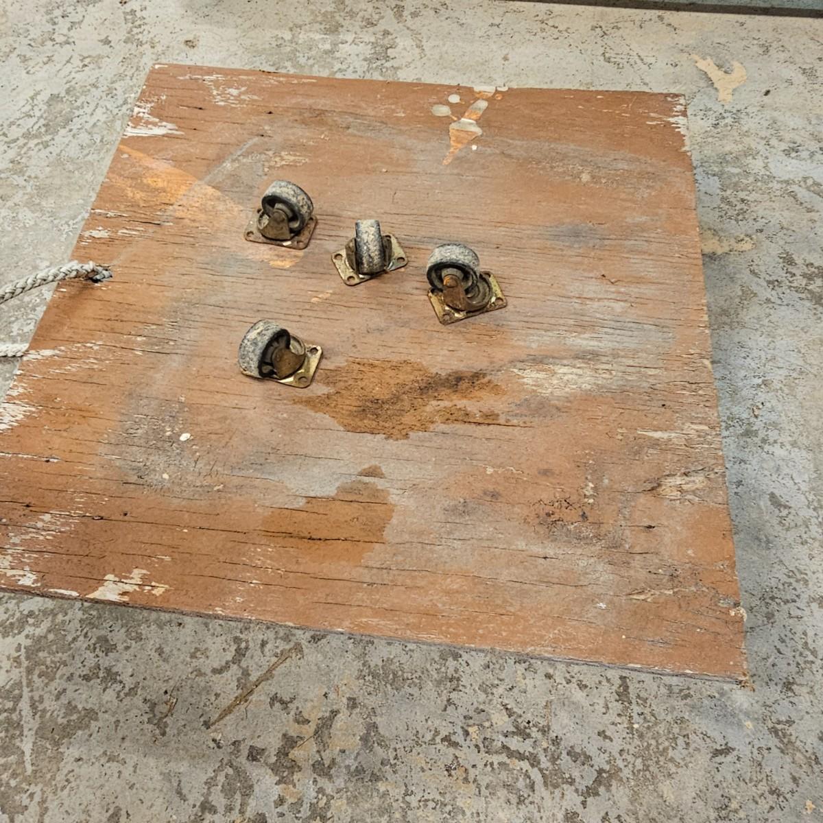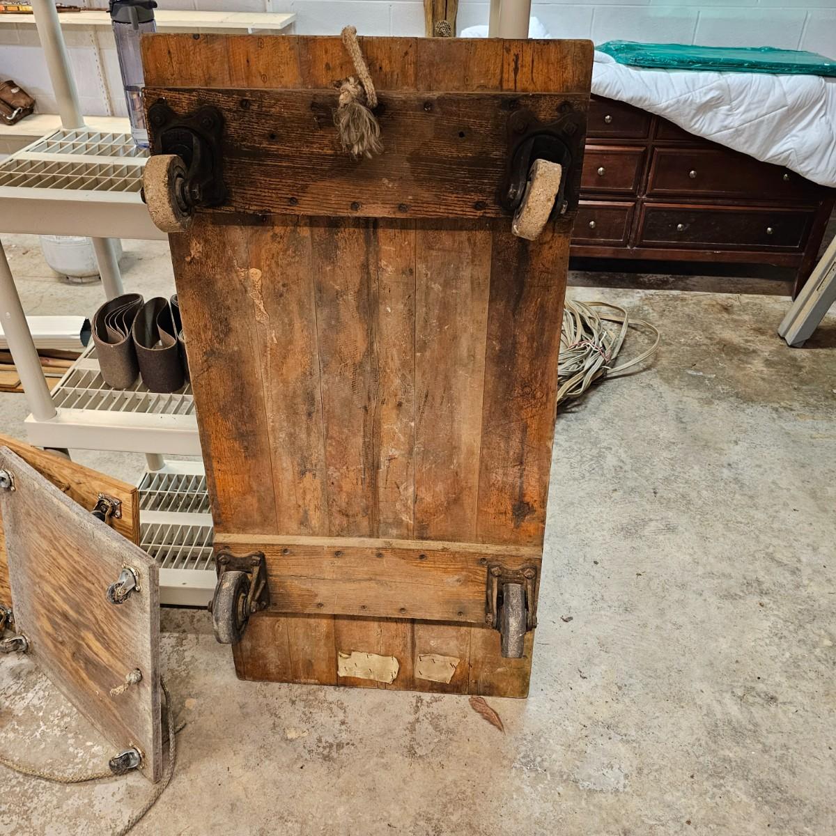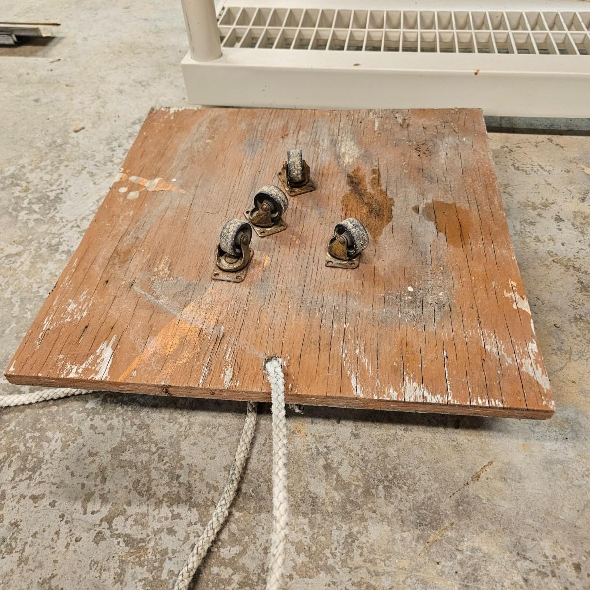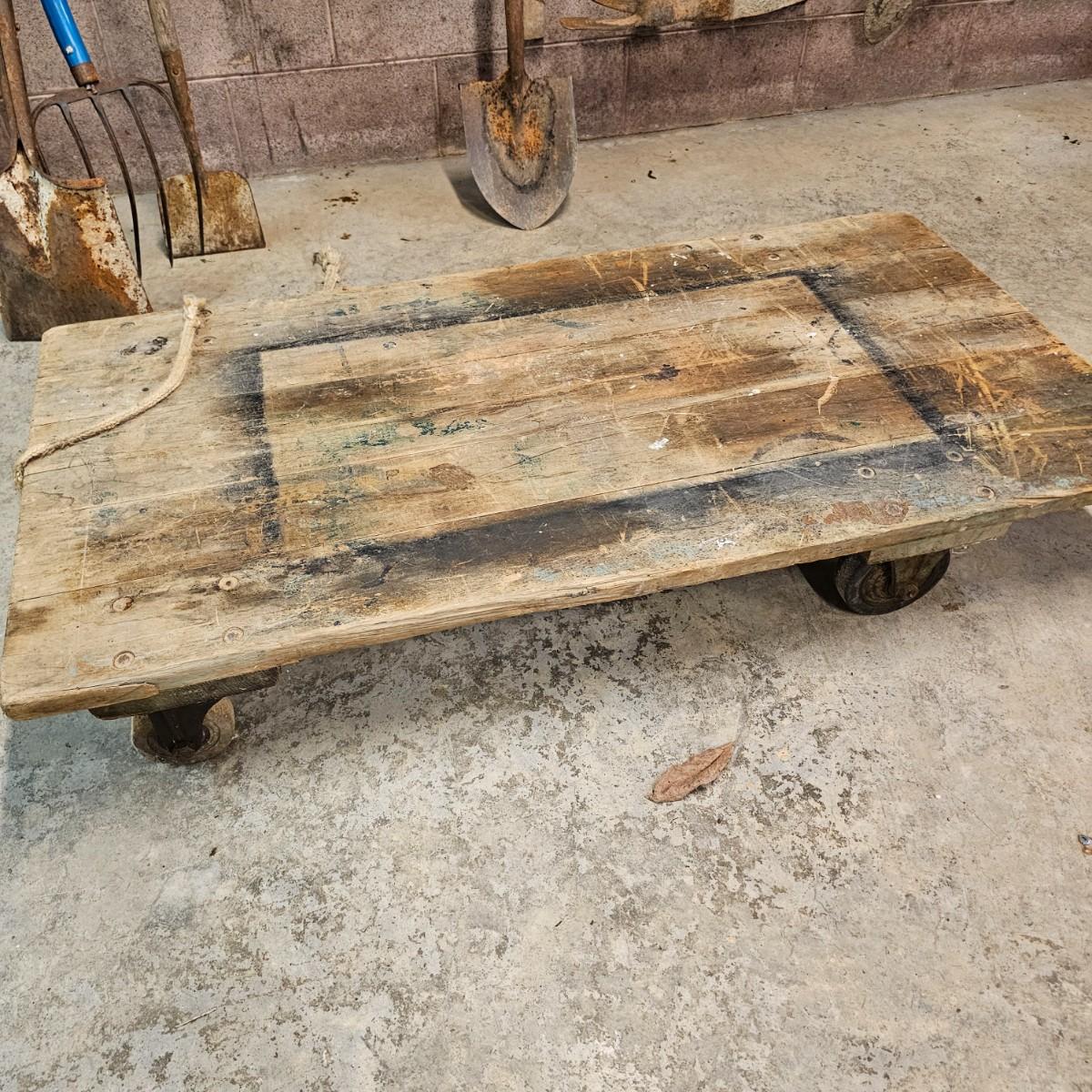 Five different sizes of platform rolling carts. All units are either plywood or solid tops. Sizes range from 16"Sq x 3"H to 48" x 24" x 8"H. Most have pull ropes, see photos for details. Local pickup only.