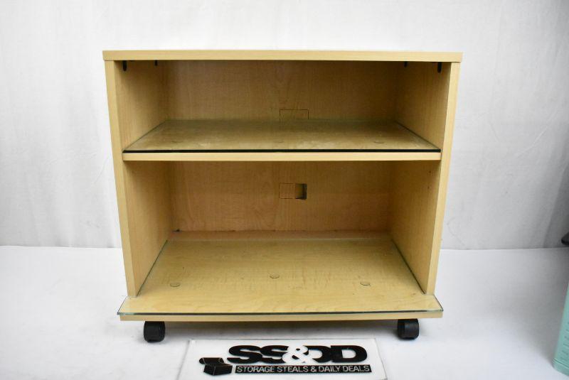 Rolling Cart with Glass Shelf Protectors. Wood Laminate