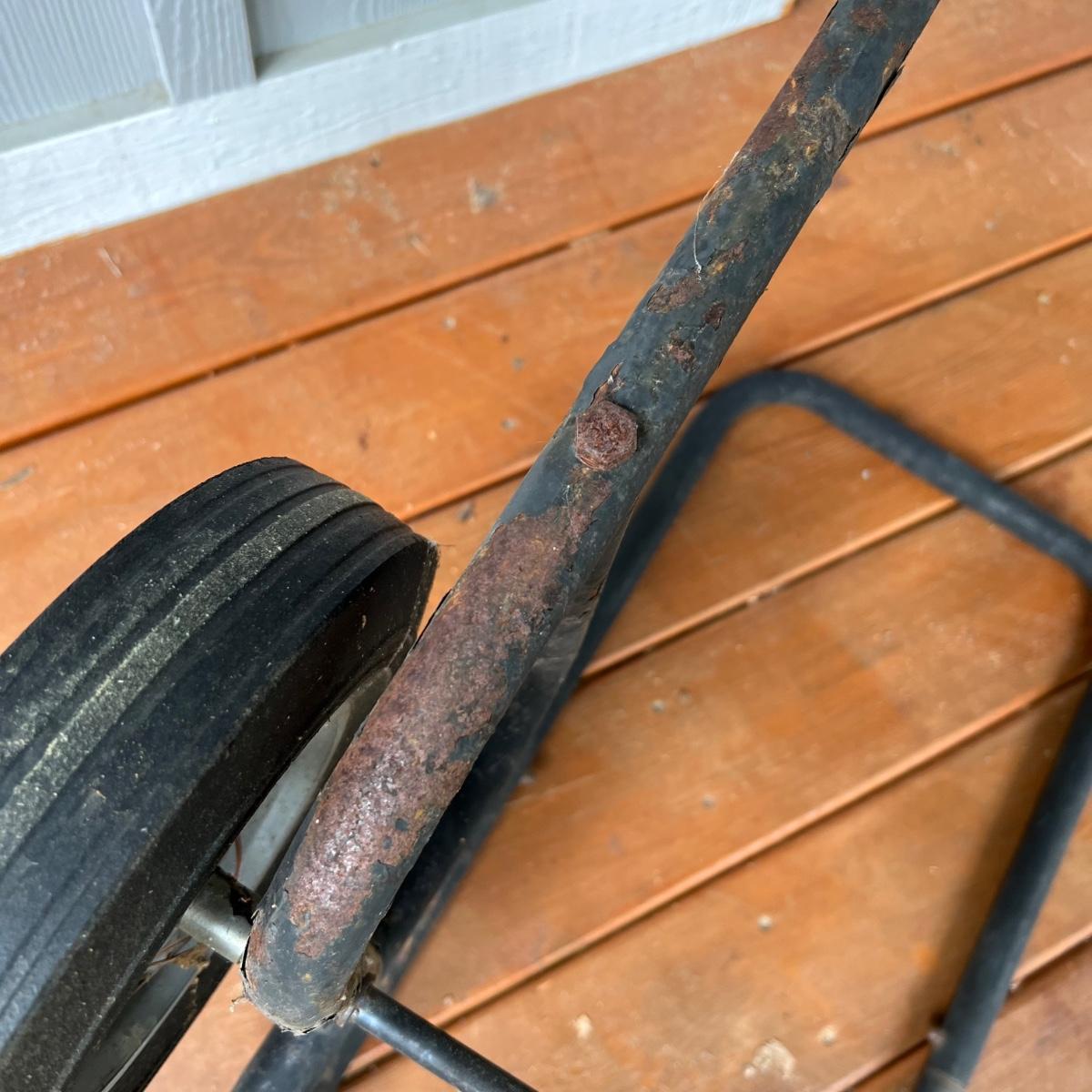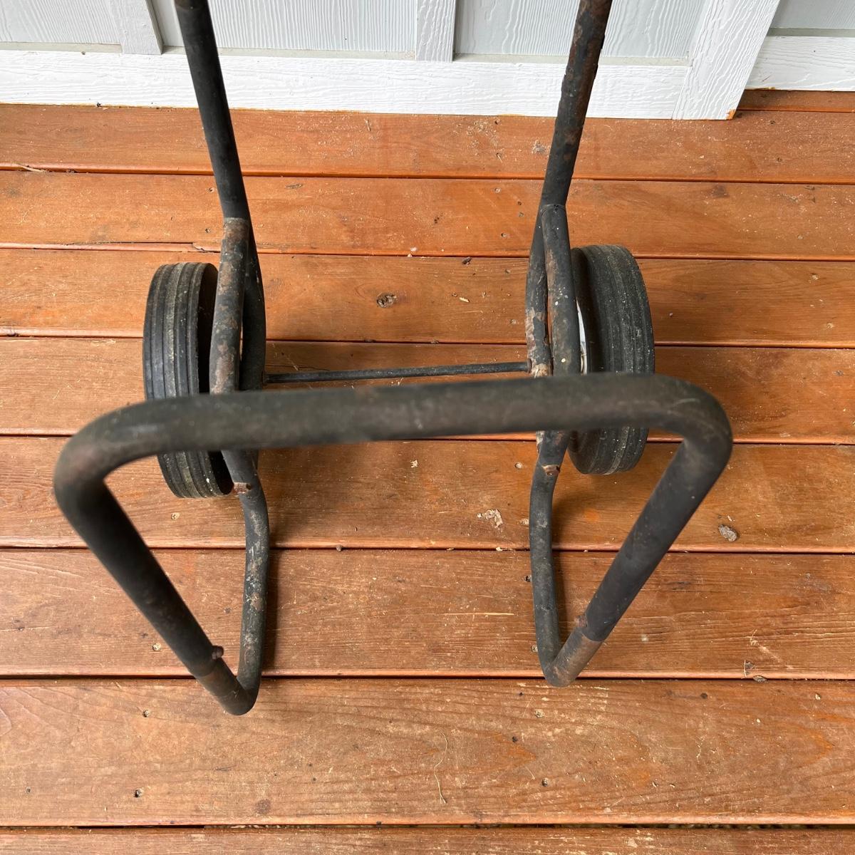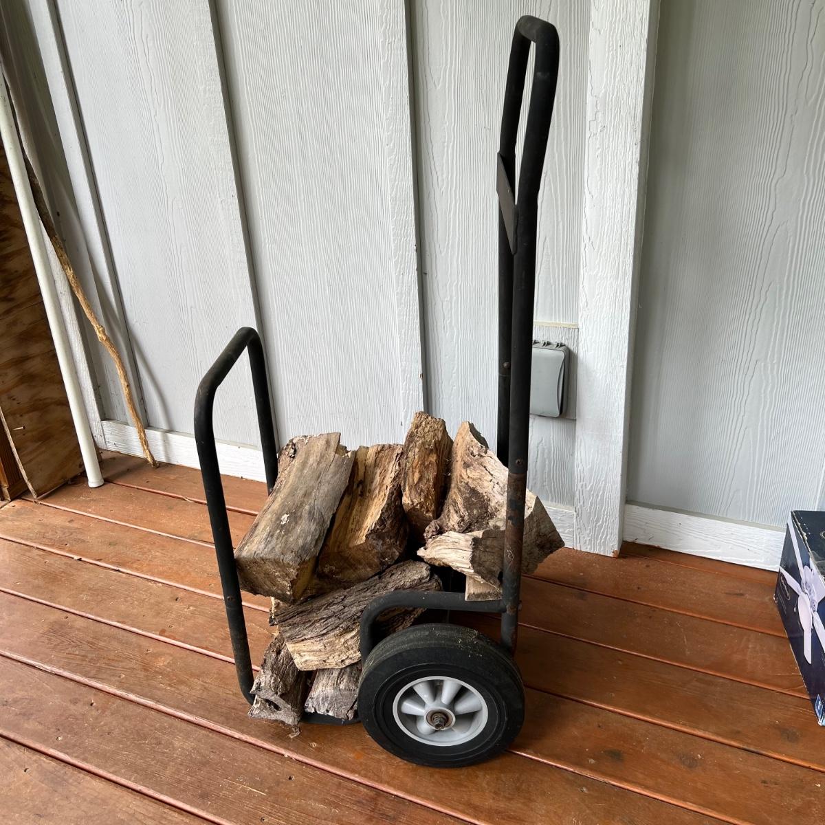 This lightweight metal rolling log cart moves freely and easily. There is some minor surface rust in areas, see images. Wood is not included.