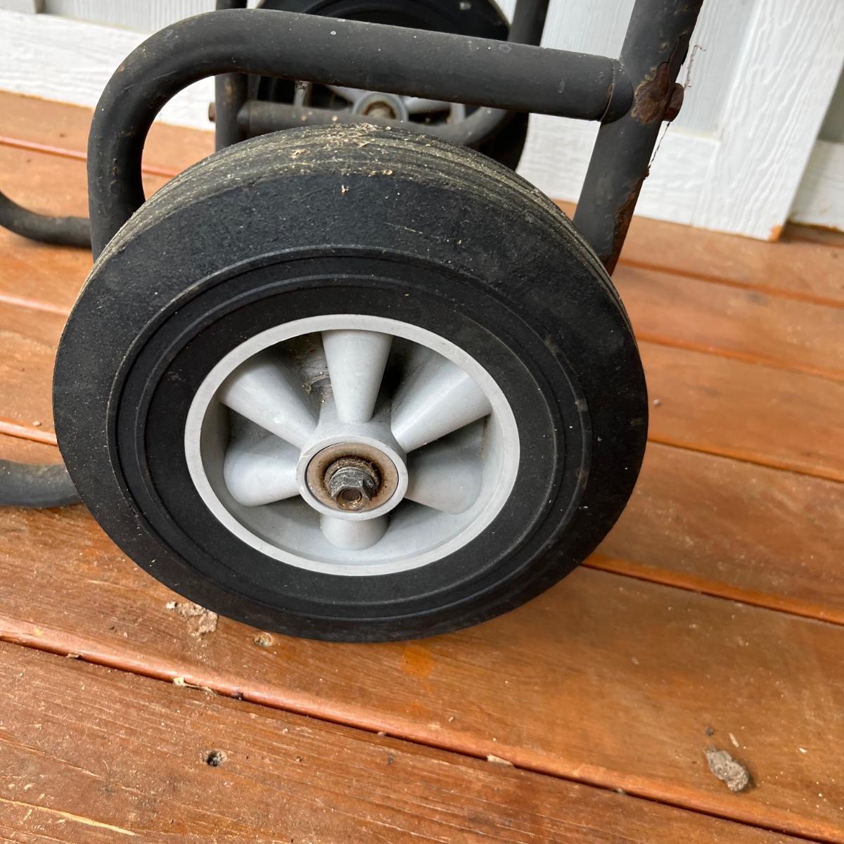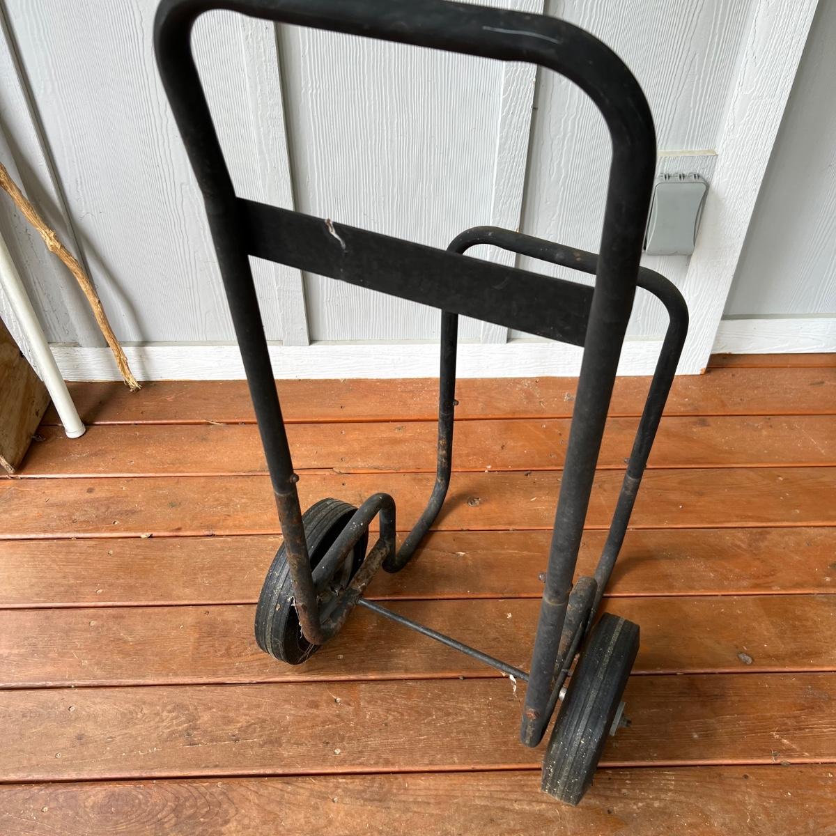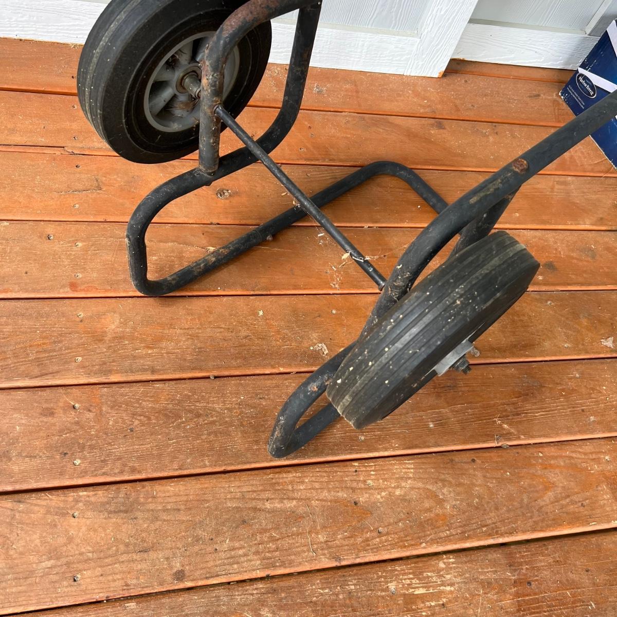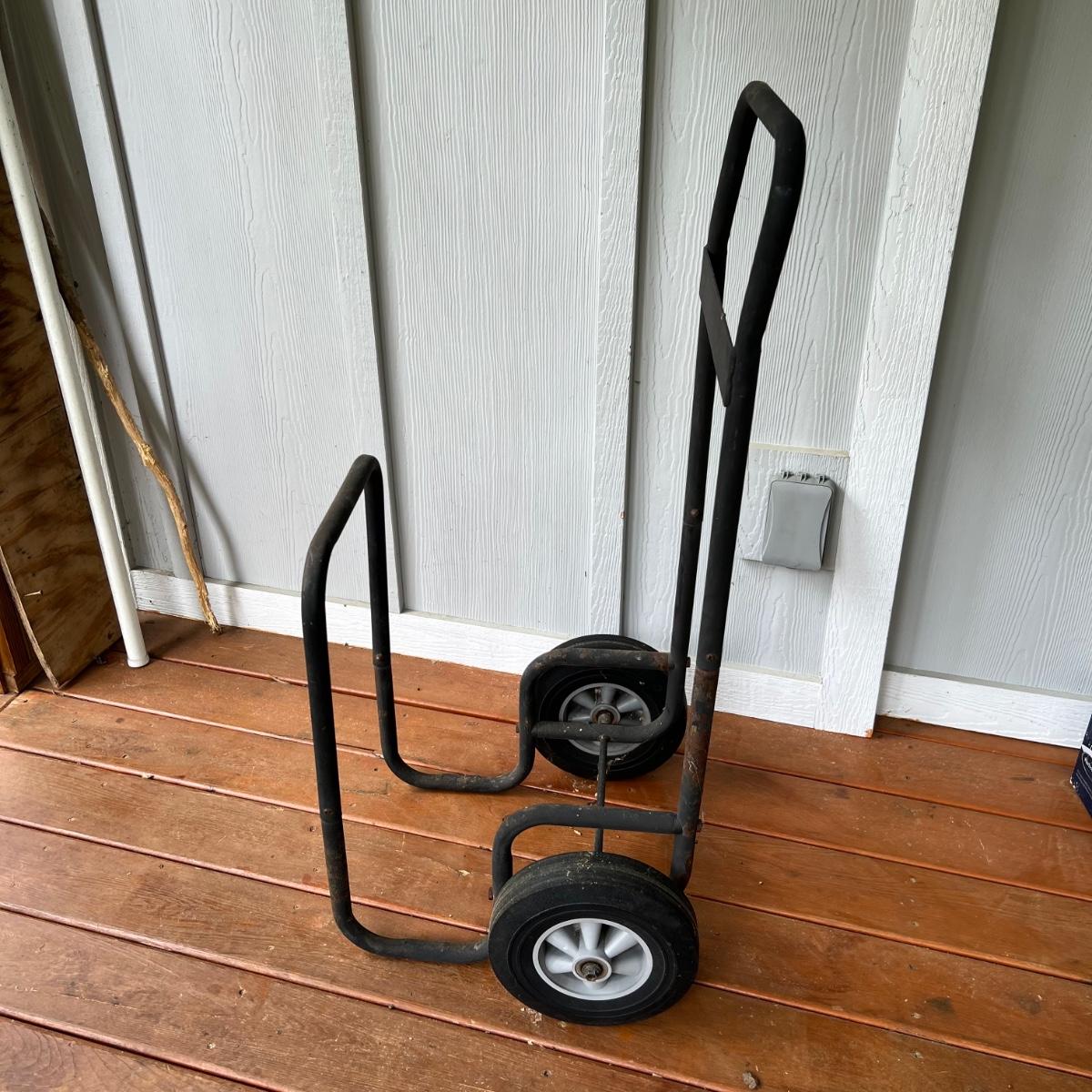 This lightweight metal rolling log cart moves freely and easily. There is some minor surface rust in areas, see images. Wood is not included.
