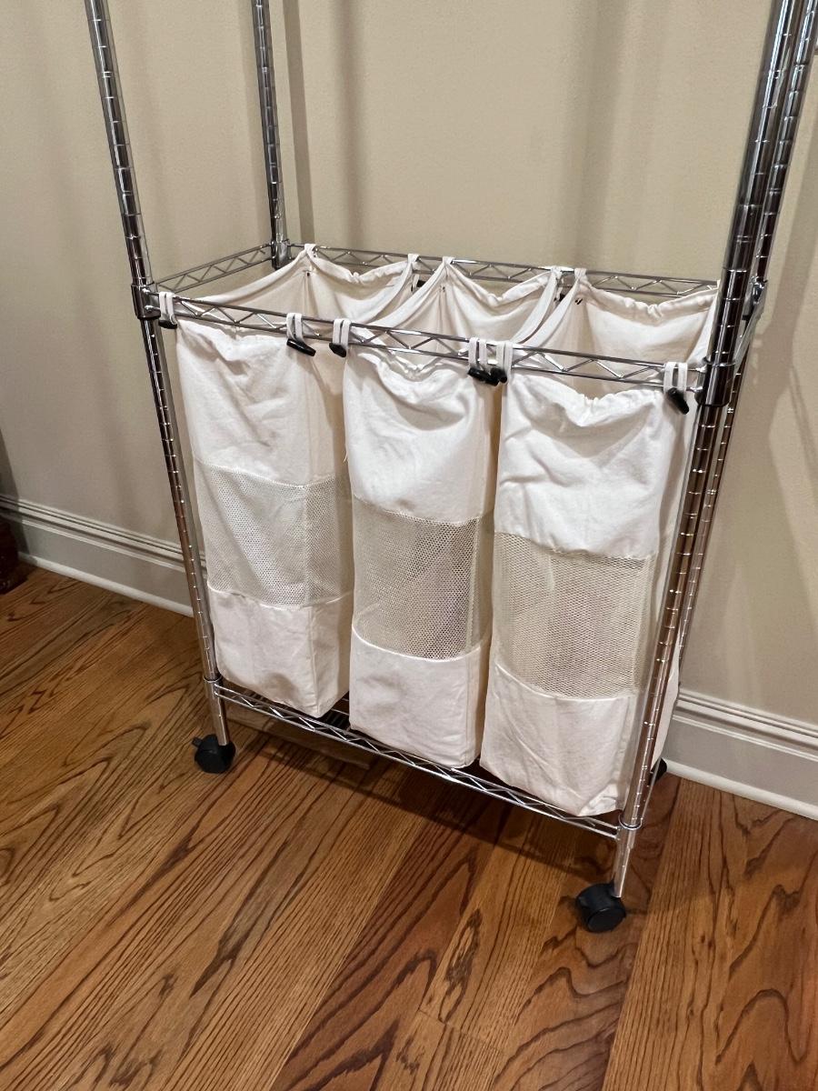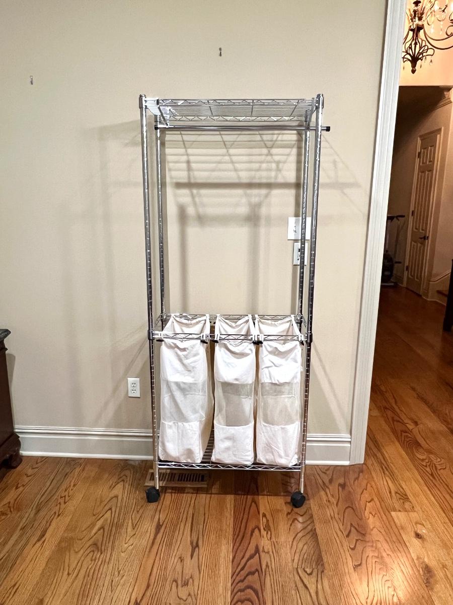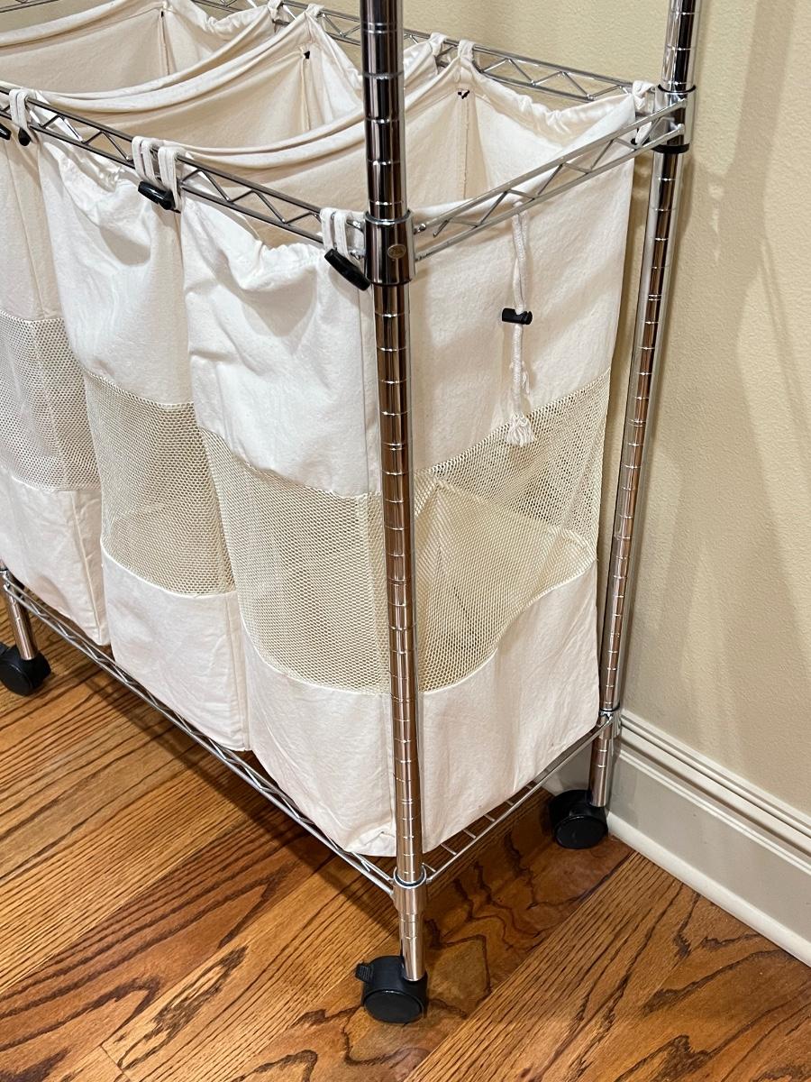 Has 3 removable sorter bags ~ Rolls easily ~ 75” H x 30” W x 14” D