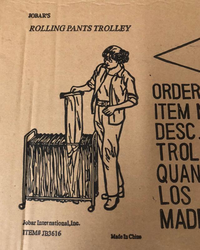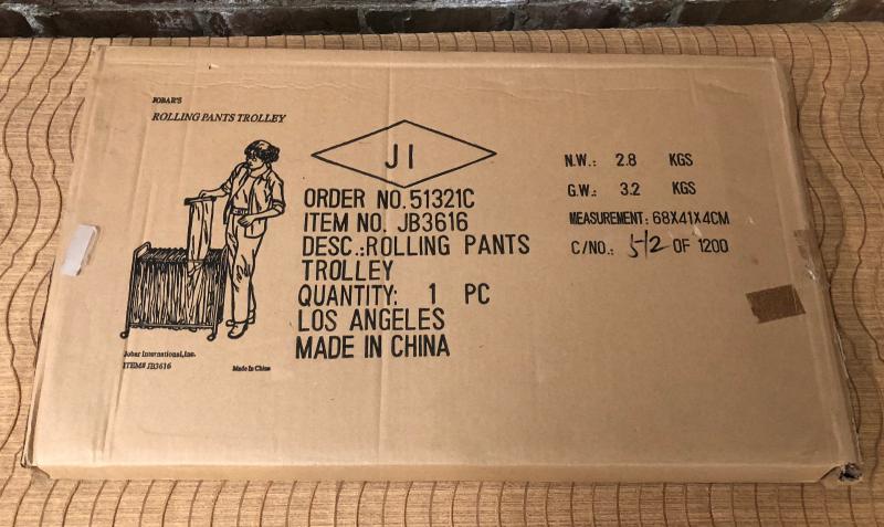 New in the box here is an unassembled rolling pants trolley...as pictured...