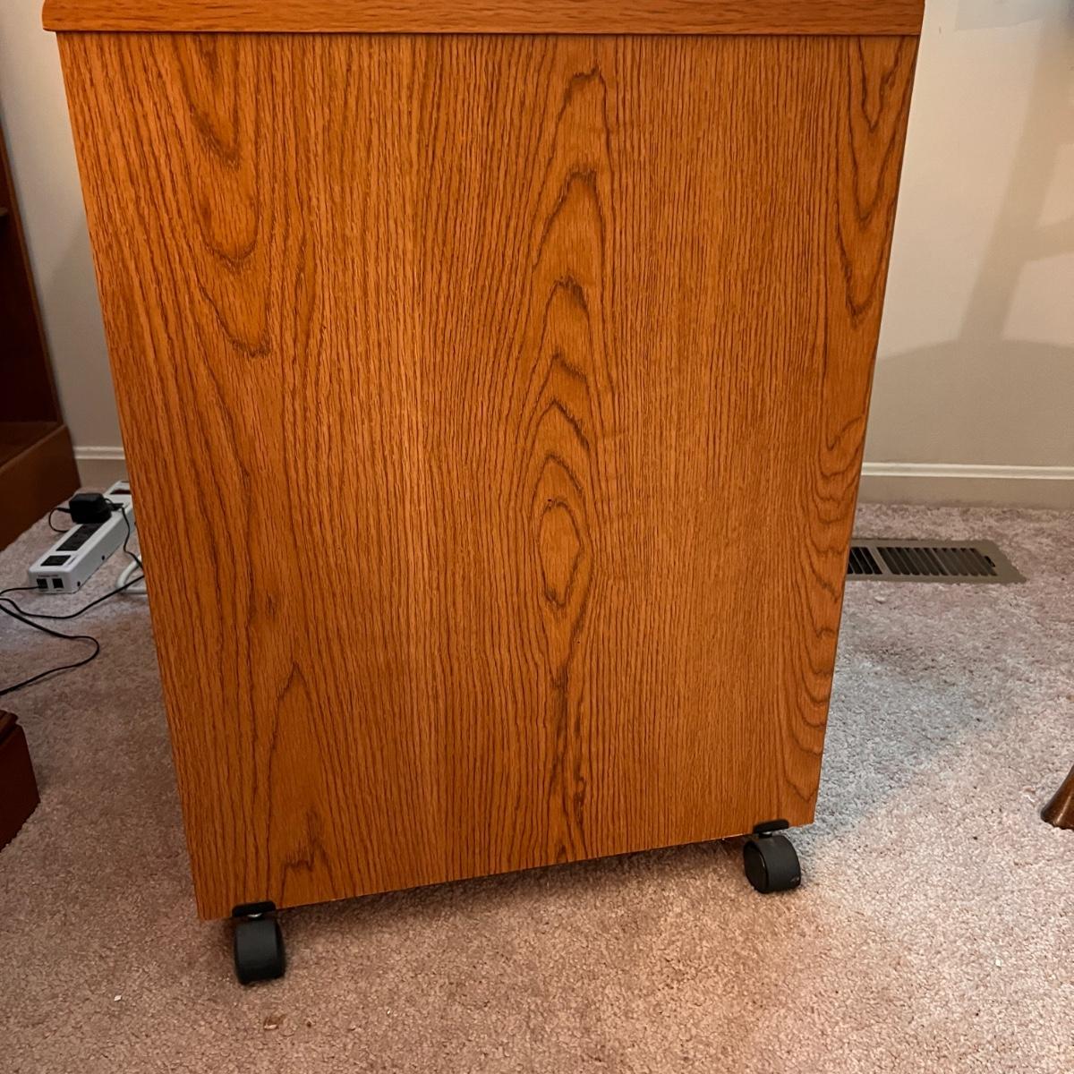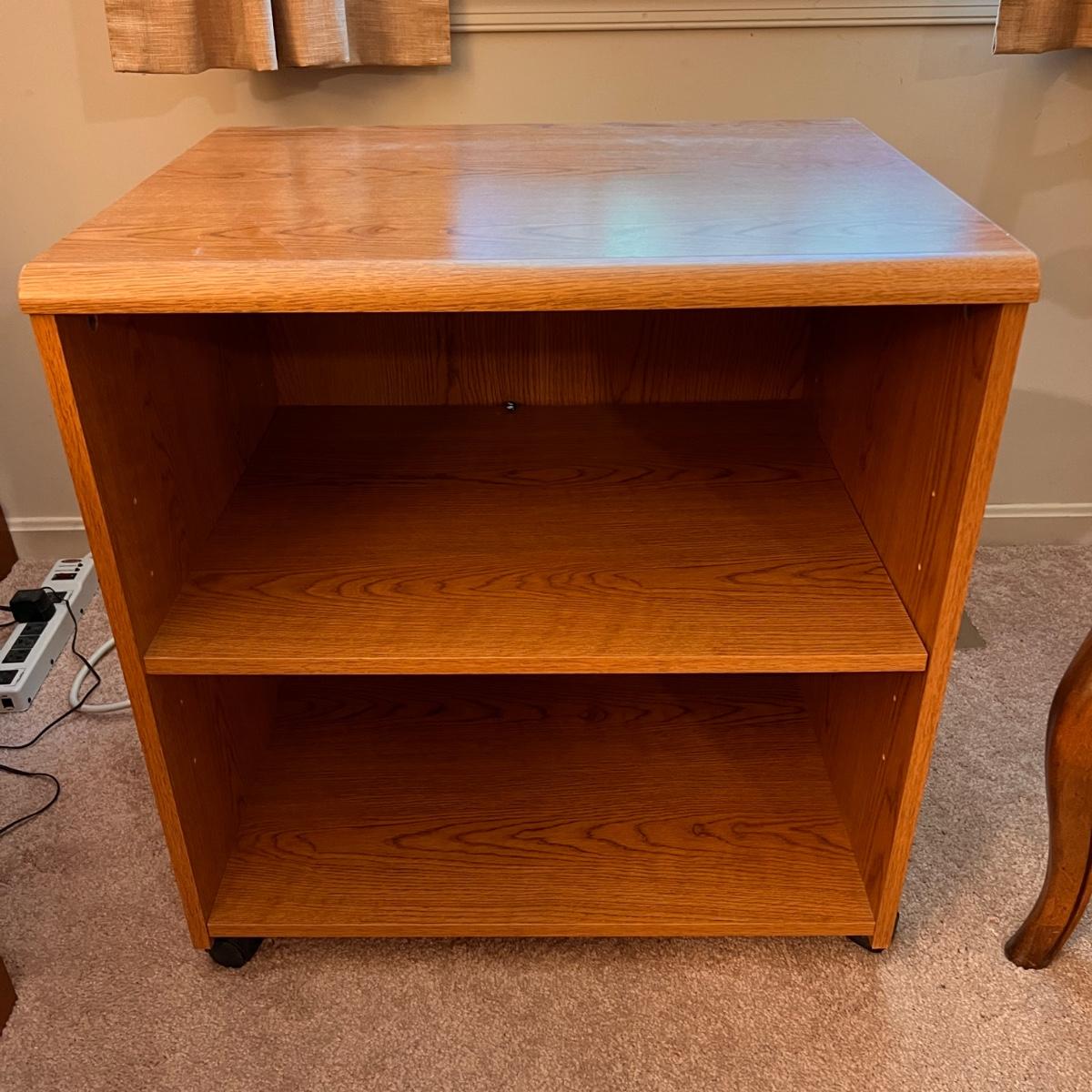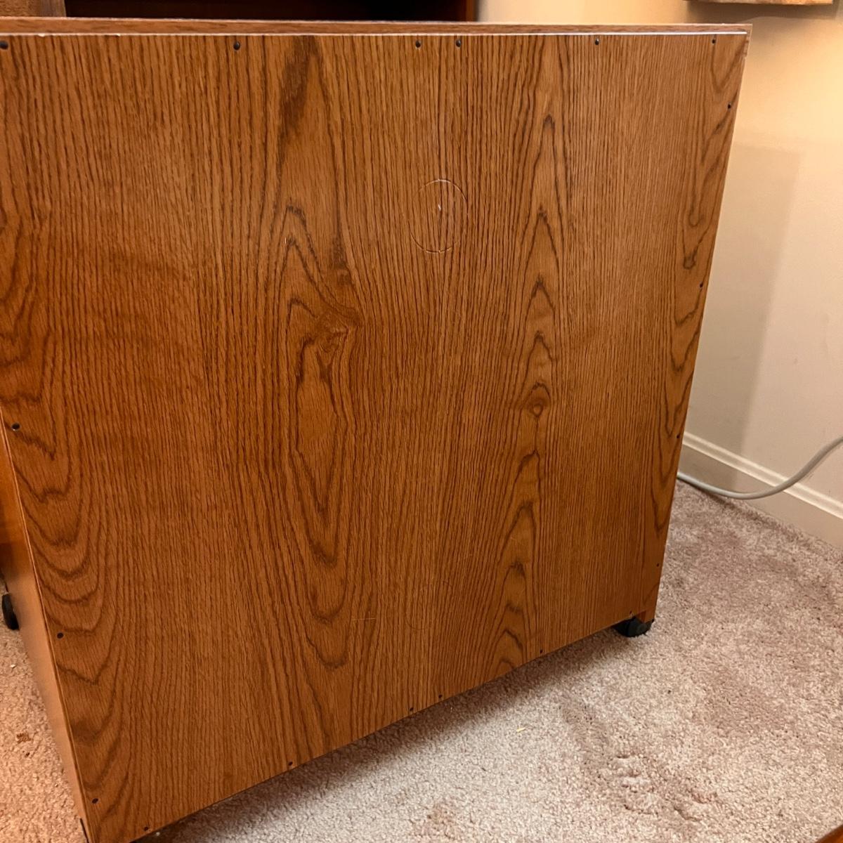 The back has a circle that can be punched out to make it a media cabinet. In good condition.