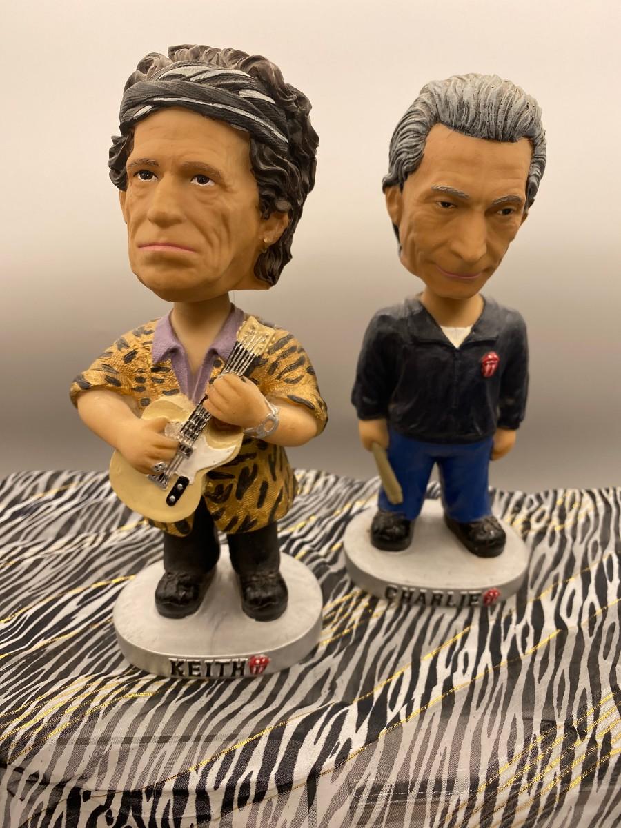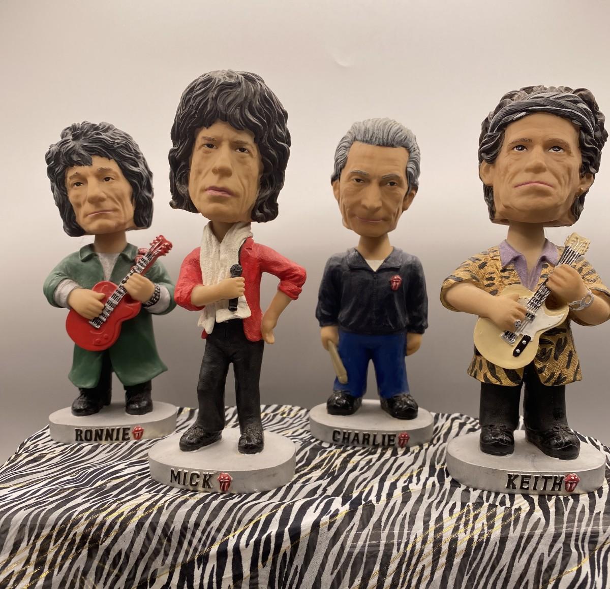 Each Bobblehead features a different member of the iconic rock band, including Mick Jagger, Keith RIchards, Charlie Watts, and Ronnie Wood. Good condition, sold as is.. Very good condition, no chips. Approximatey 7 inches tall. The reserve must be met to be sold.