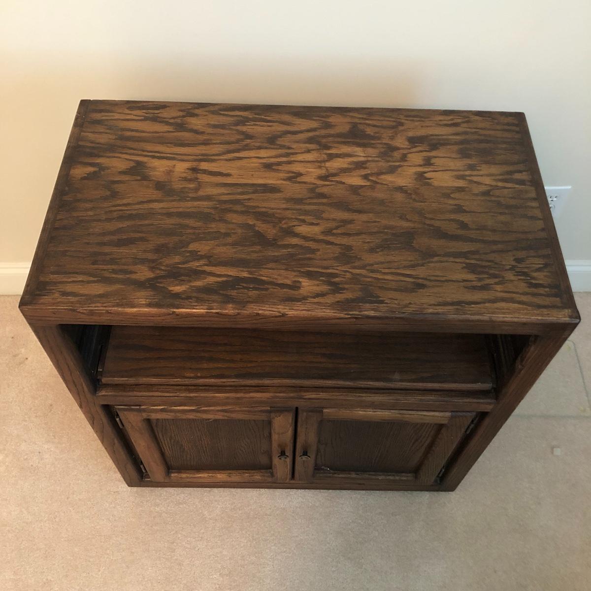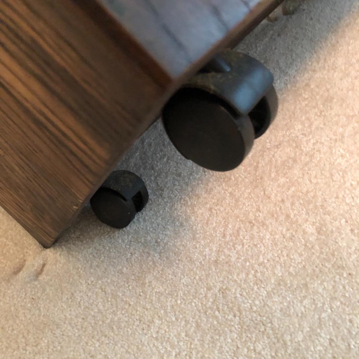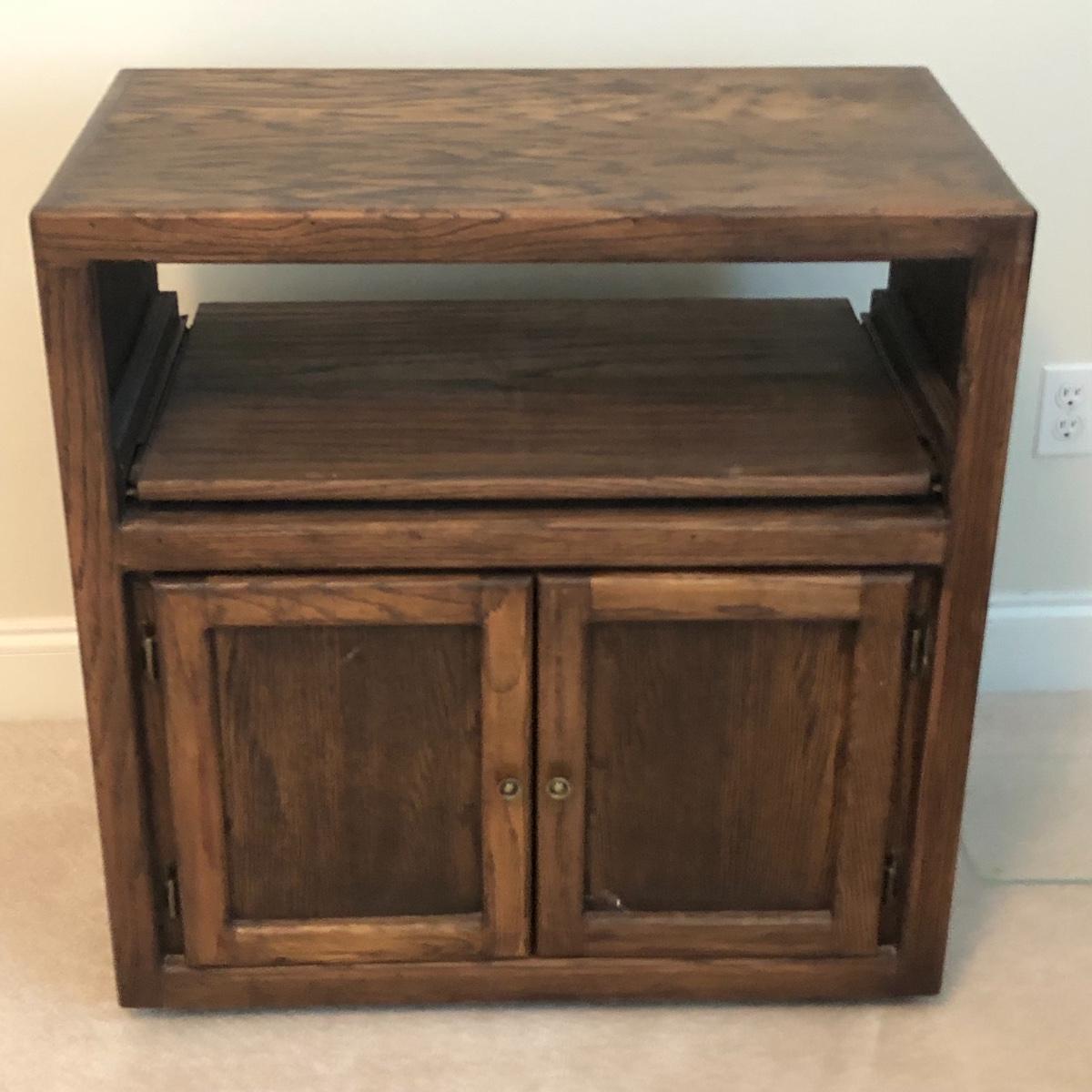 This piece could be used as a tv stand or computer desk as it has a pull out keyboard draw plus a spacious lower cabinet. Made from lightweight pressed wood on wheels.