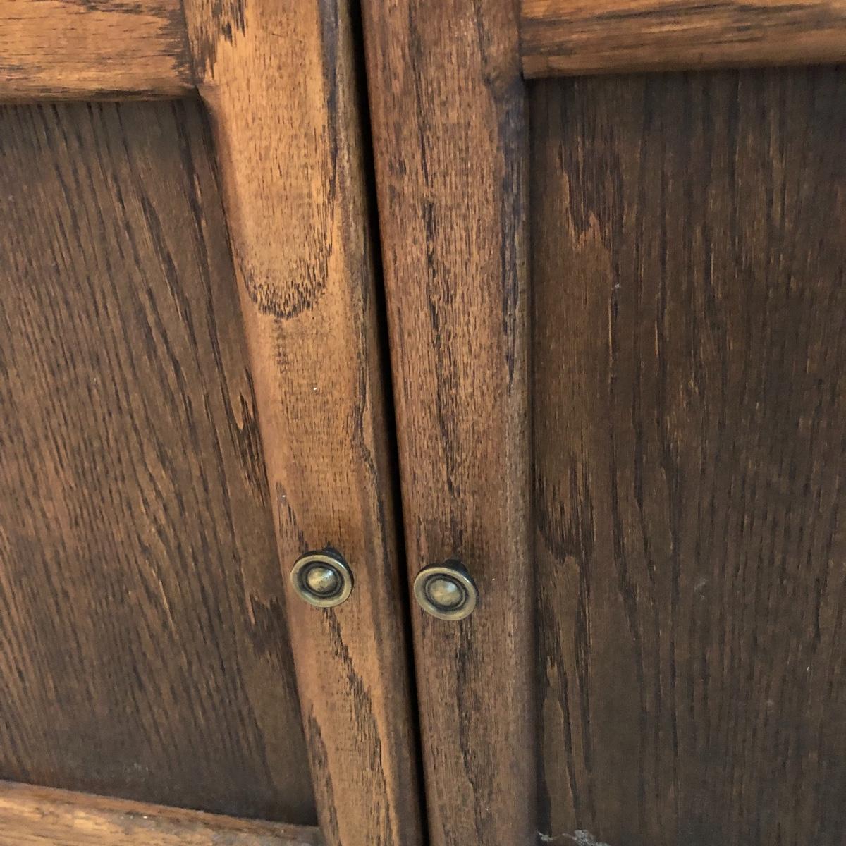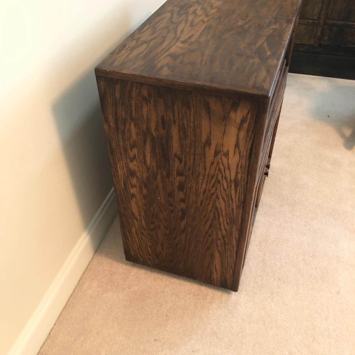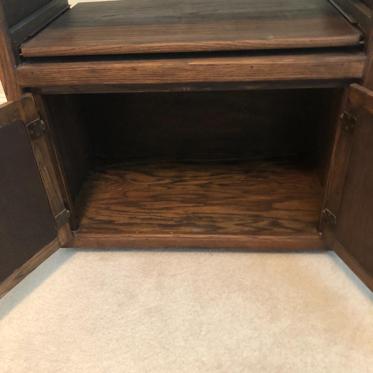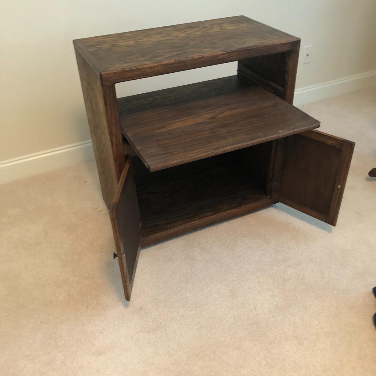 This piece could be used as a tv stand or computer desk as it has a pull out keyboard draw plus a spacious lower cabinet. Made from lightweight pressed wood on wheels.