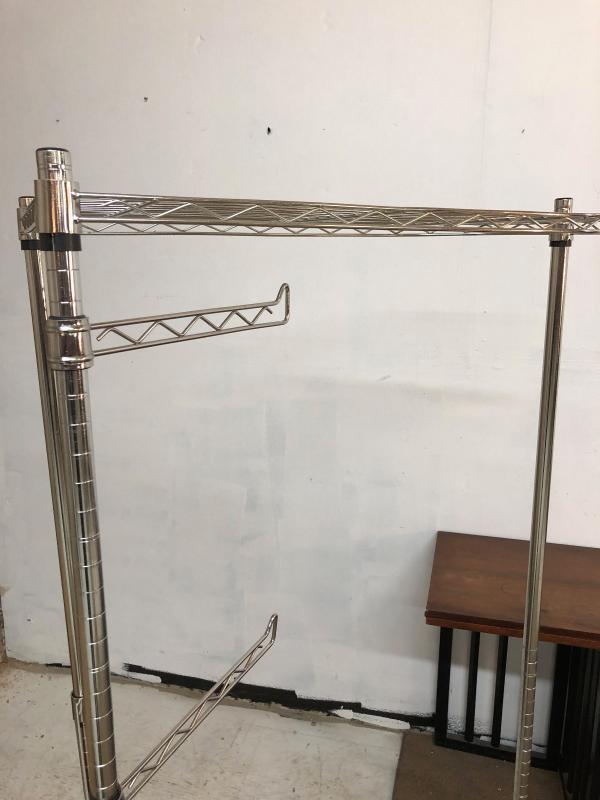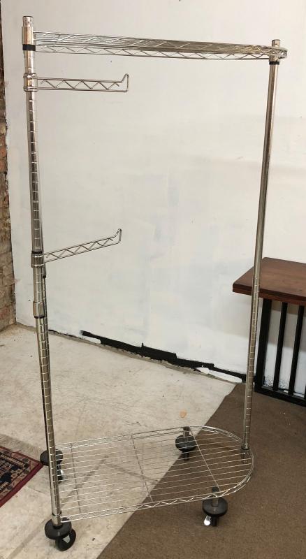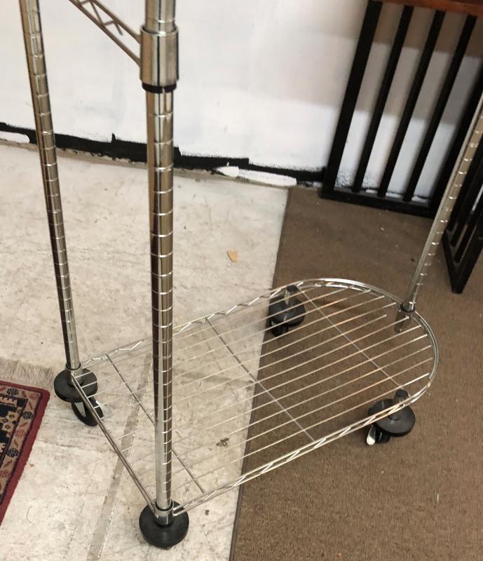 Metal rolling clothing rack. 30" by 16", 64" tall.