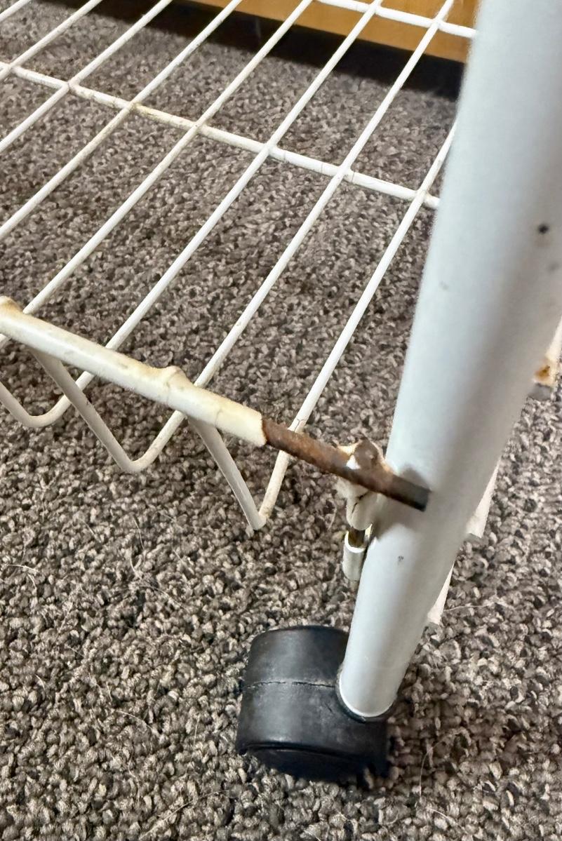 Has 3 wire shelf racks. Some rust in a few places, see photos for details.