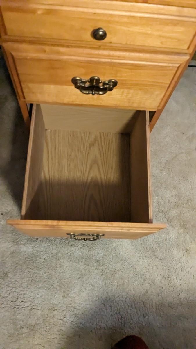 53.75"x20"x45". One piece, a more contemporary piece that does show pretty significant wear on actual roll. Drawers and top shelf in good shape.