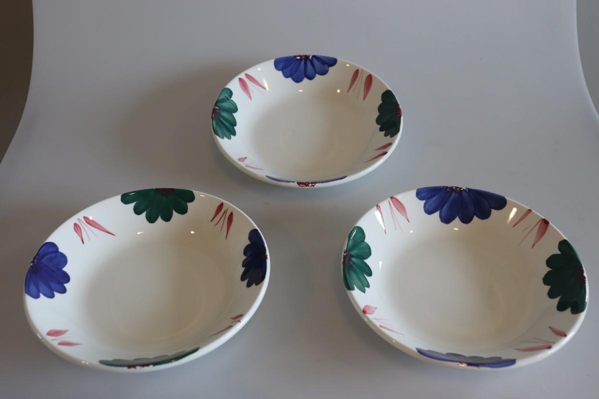 Roma Inc Large Serving Bowl Hand Painted Blue Green Pink Flowers, Italy, 12