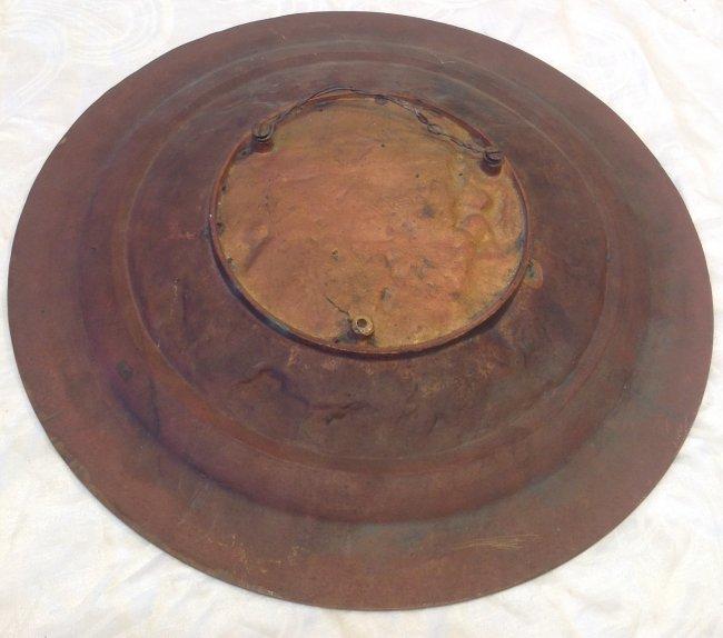 Description: Roman heavy bronze roman musical courtyard court plate. Material: Heavy bronze. Measurement approximate: 14 In diameter rim. Shipping cost: $45 excluding Hawaii, Alaska and California