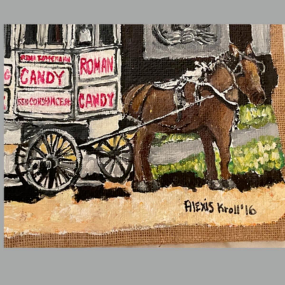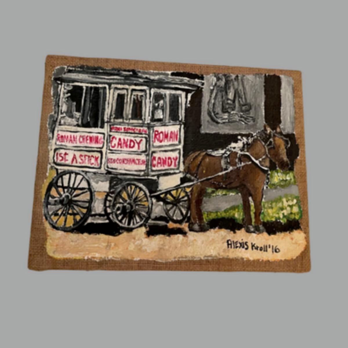 This a perfect rendition of the Roman candy carriage in the Quarter. Signed by the artist and measures 14 x 11