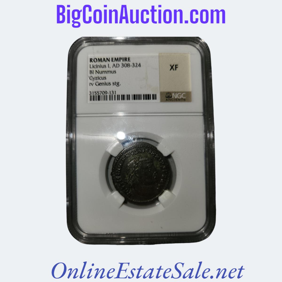 LICINIUS 1ST BI NUMMUS CYZICUS RV GENIUS STG. (XF)