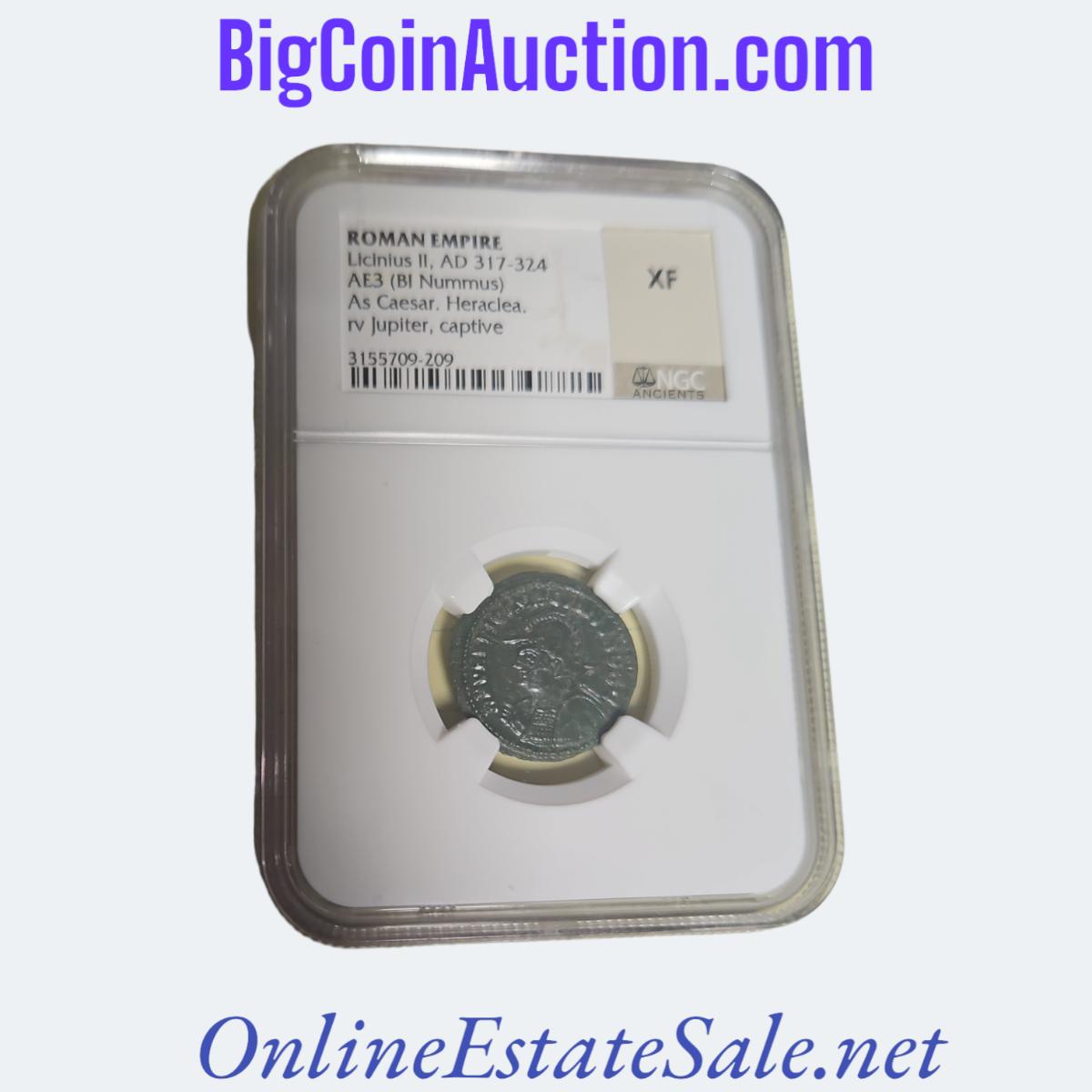LICINIUS 2ND AE3 BI NUMMUS AS CAESAR. HERACLEA RV JUPITER CAPTIVE (XF)