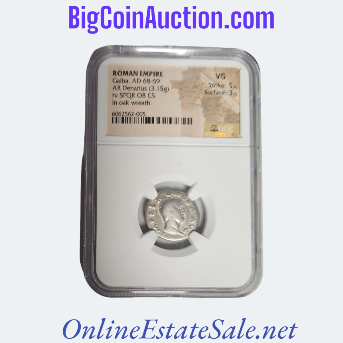 GALBA, AR DENARIUS (3.15g) RV SPQR OB CS IN OAK WREATH (VG) STRIKE 5/5 SURFACE 3/5