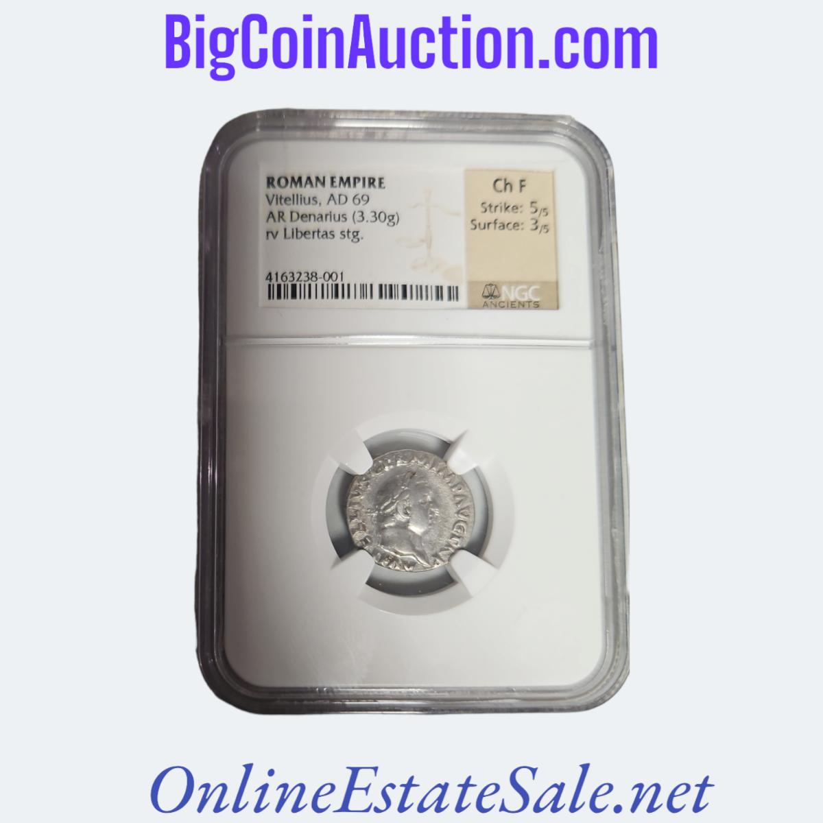 VITELLIUS AR DENARIUS (3.30g) RV LIBERTAS STG (CH F) STRIKE 5/5 SURFACE 3/5