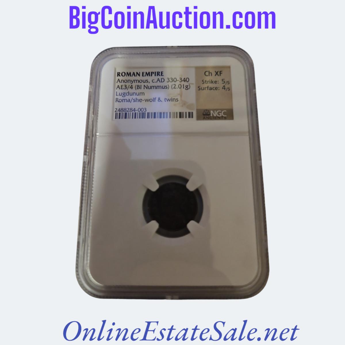ANONYMOUS, AE3/4 (BI NUMMUS)(2.01g) LUGDUNUM ROMA/SHE-WOLF &TWINS (CH XF) STRIKE 5/5 SURFACE 4/5