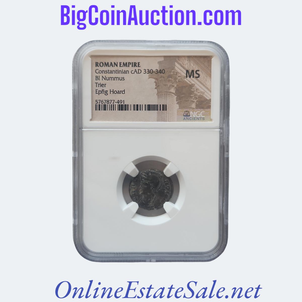 Roman Empire Constantinian cA.D. 330-340 BI Nummus Trier Epfig Hoard. MS