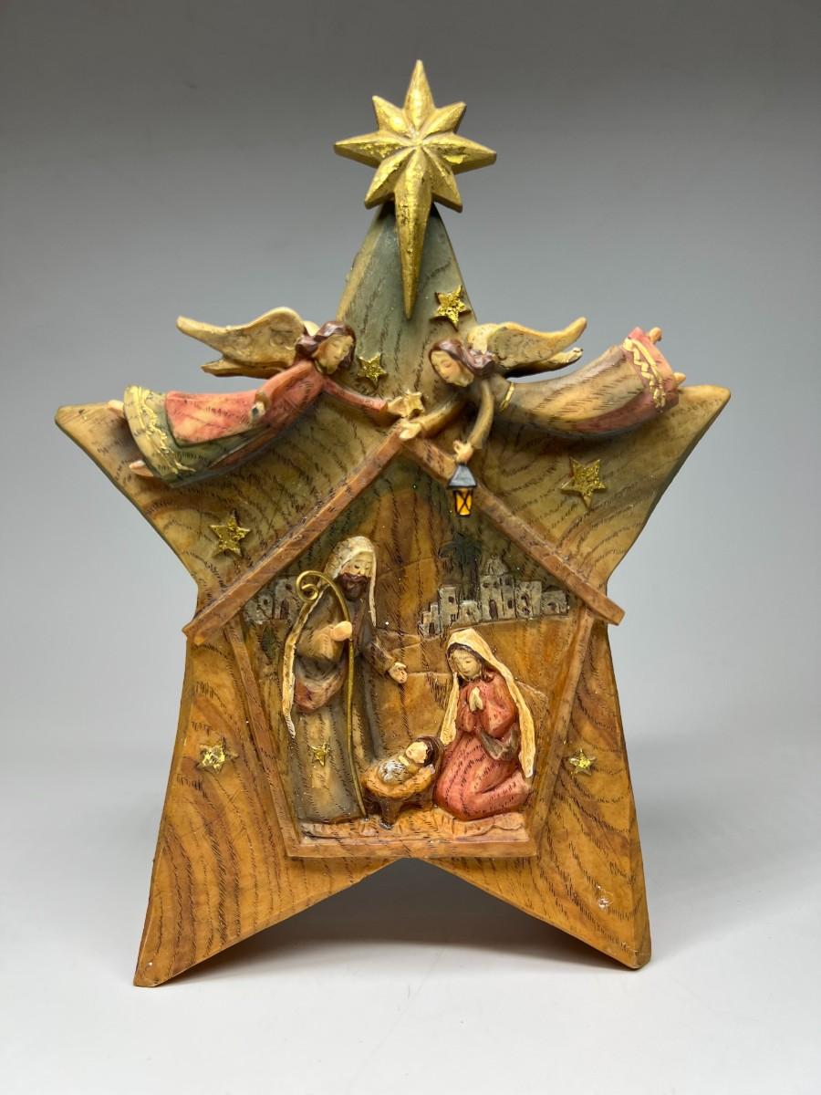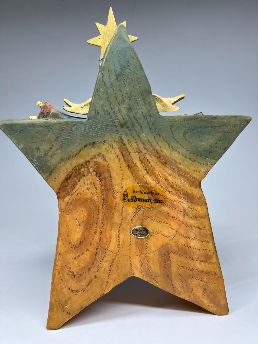 Roman Inc. Wooden Carved Star Holiday Star Nativity Scene Religious Home Decor