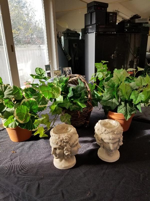 Roman style candle holders & faux plants/Flower arrangement