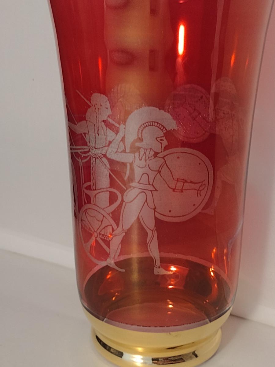 Roman Theme Glass Vase- Approx 9 1/4" Tall