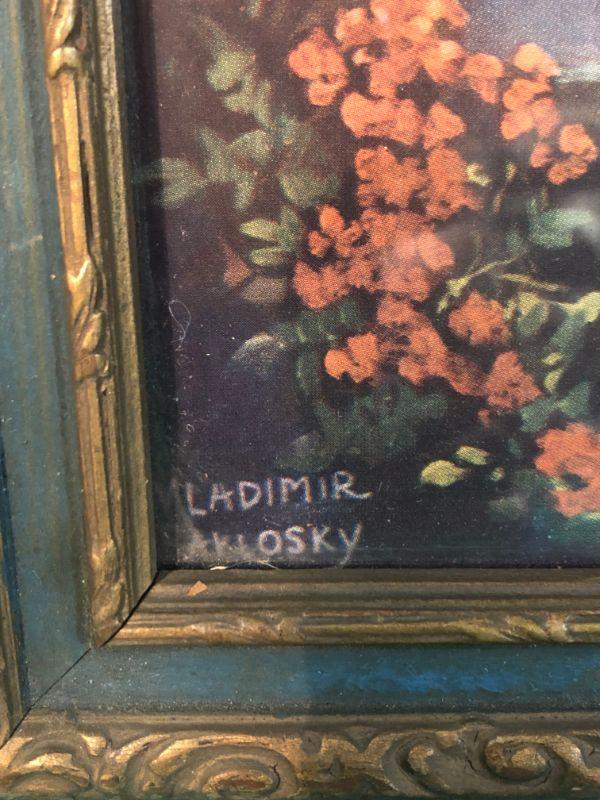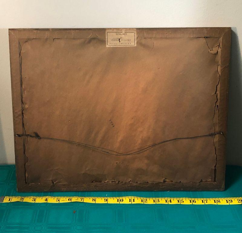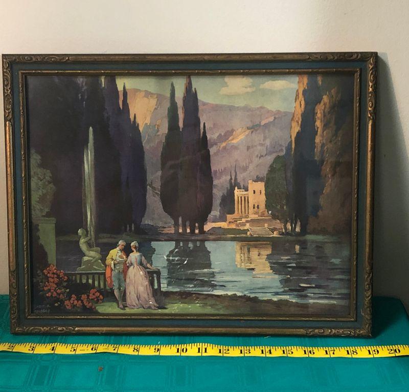 Romance by Vladimar Pavlosky. Framed print of a Victorian couple by the water. Glass is not broken on this one.