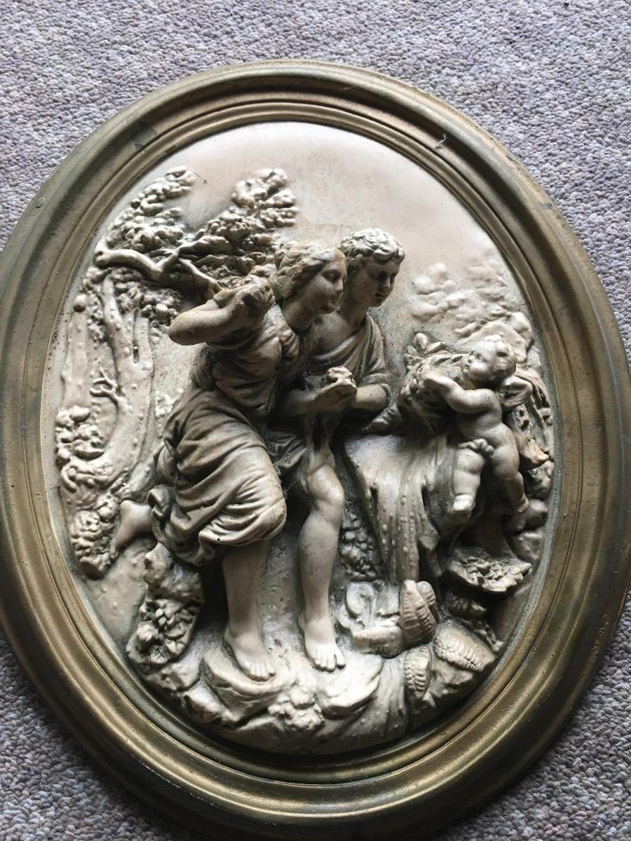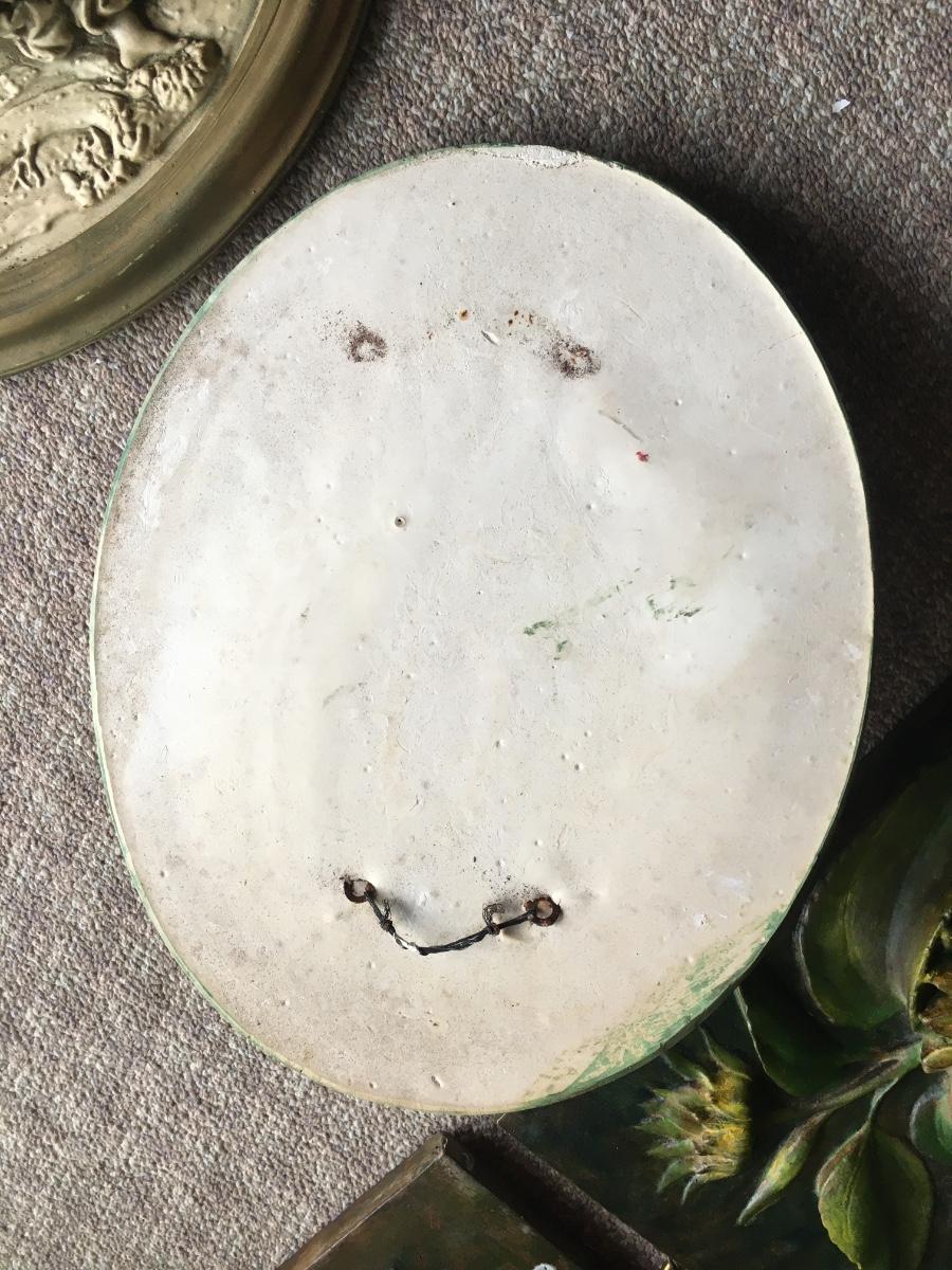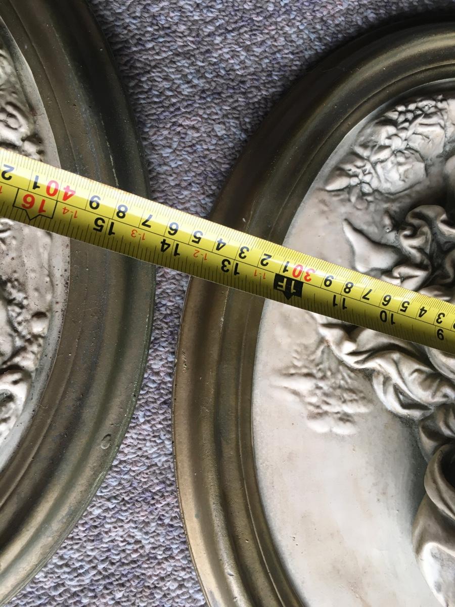 Pair of vintage chalkware wall plaques with distintive scenes. Some slight damageon one a shown in photo.