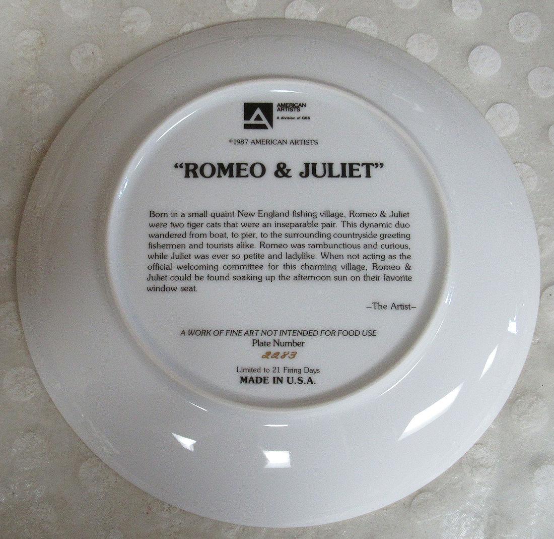 Romeo and Juliet Cat Plate, 1987, #2283