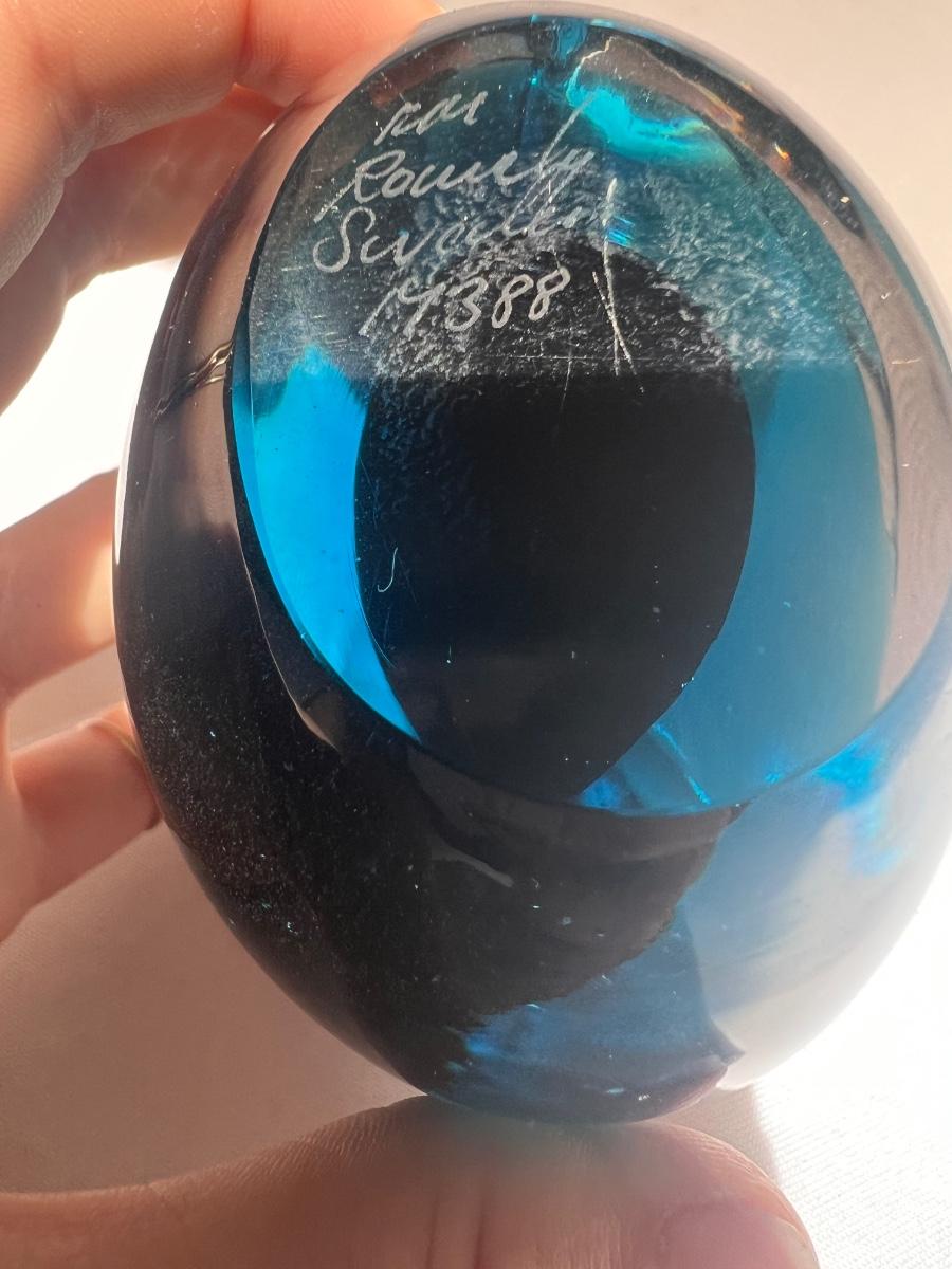 Ronneby Sweden Blue Glass Paperweight, Kosta Boda Paperweight, and More (P-DZ)
