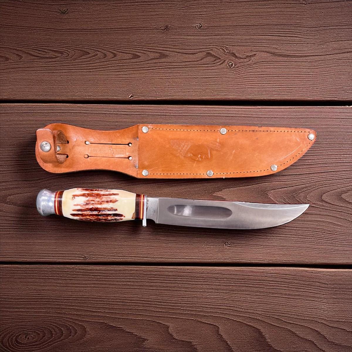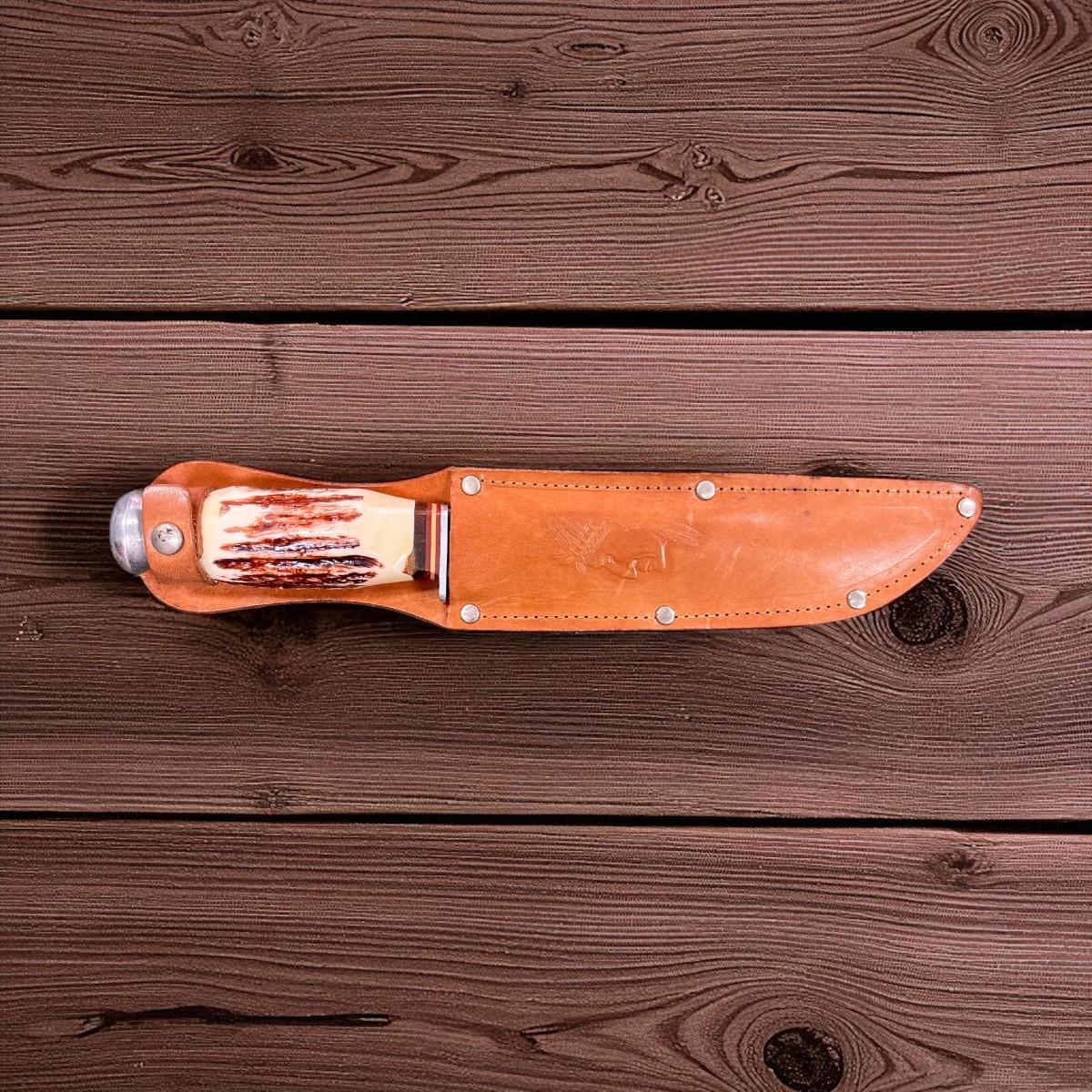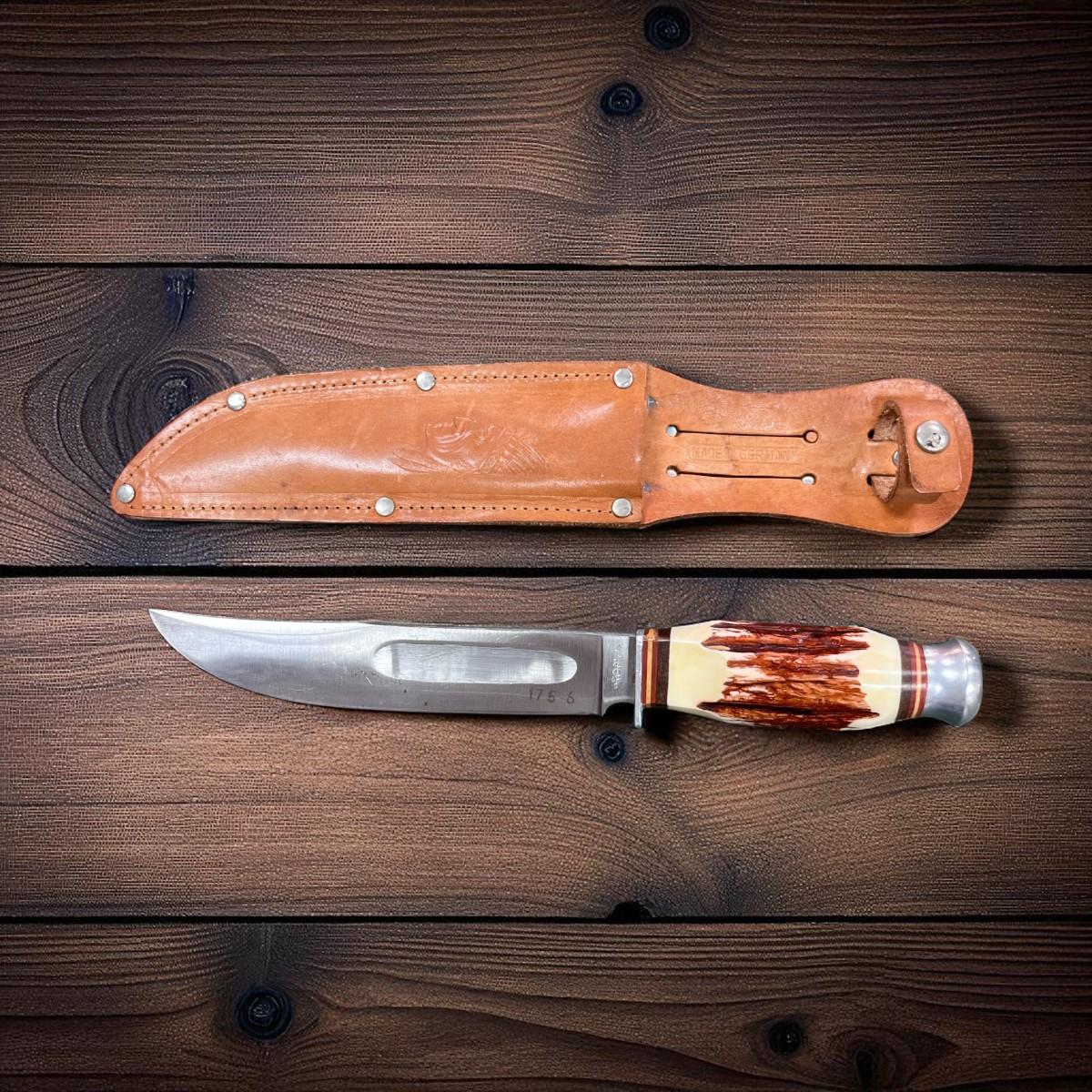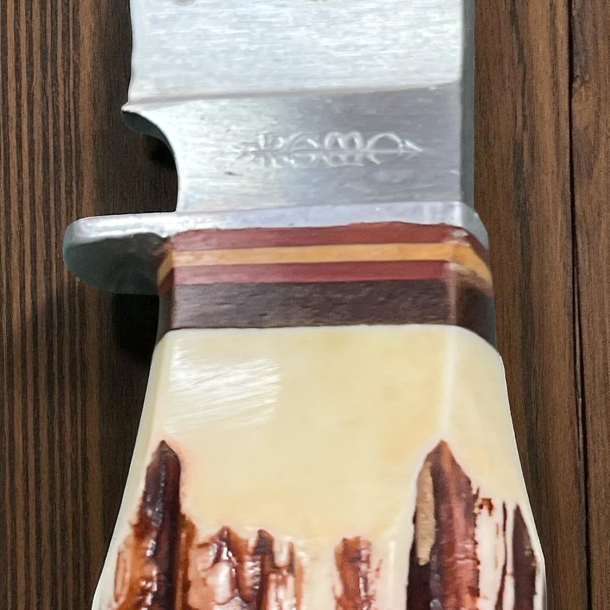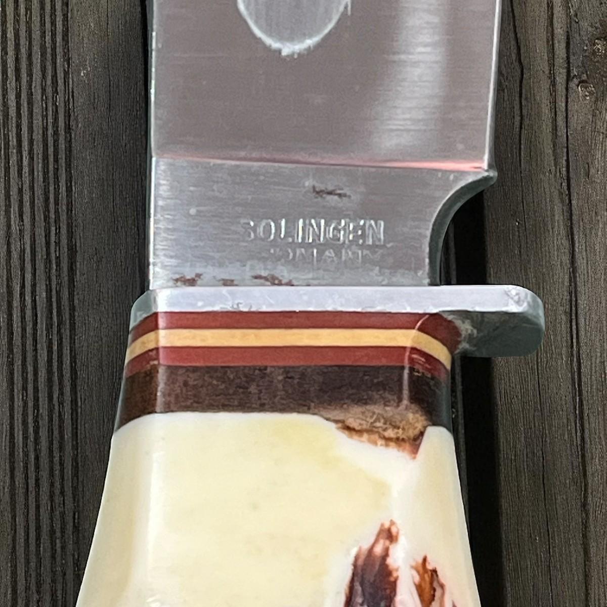 Romo Fixed Blade Knife and Sheath. Model 175-6 Made by Solingen in Germany. Bone Style Handle