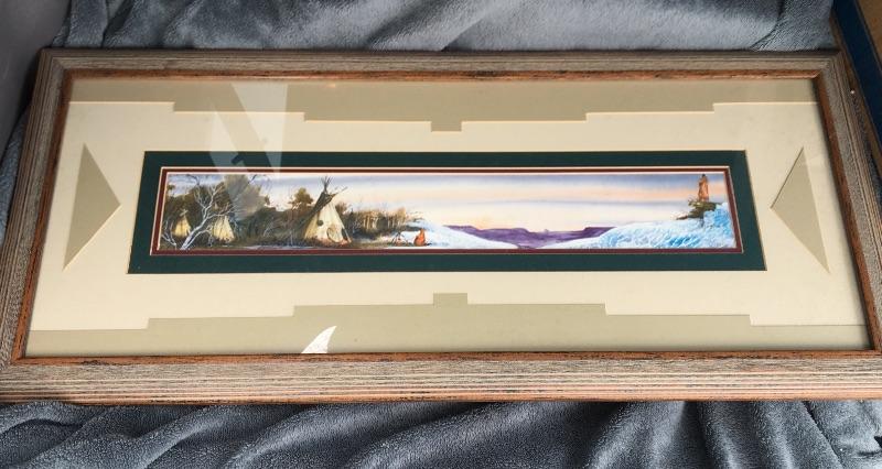 Good overall condition. Measures 40” x 18” overall. Artwork measures 26”w x 4”h.