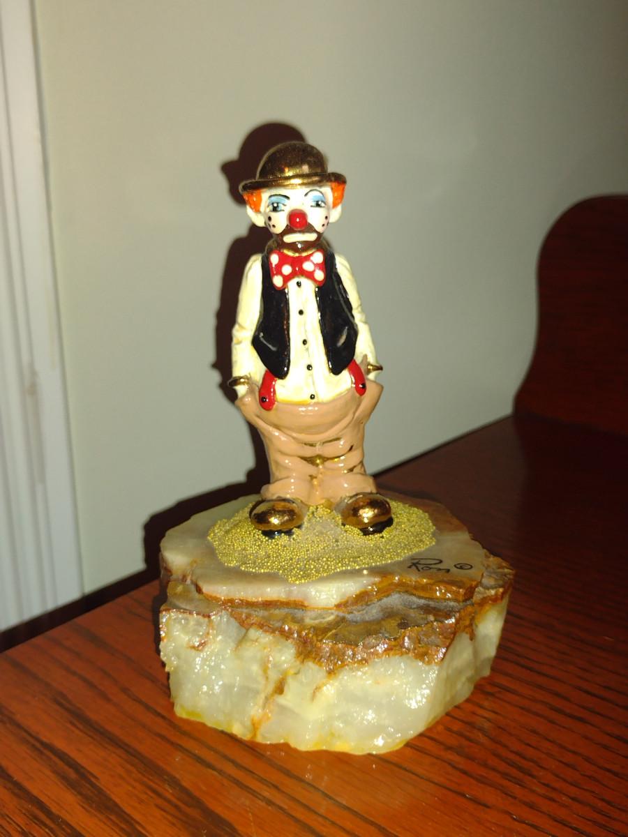 Vintage Ron Lee Clown Figurine on Stone Base- Approx 5 1/2" Tall