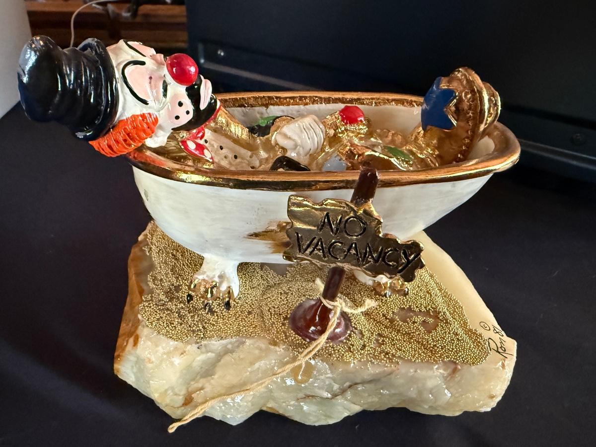 Ron Lee signed & dated 1981 Clown in Bathtub "No Vacancy" on Stone