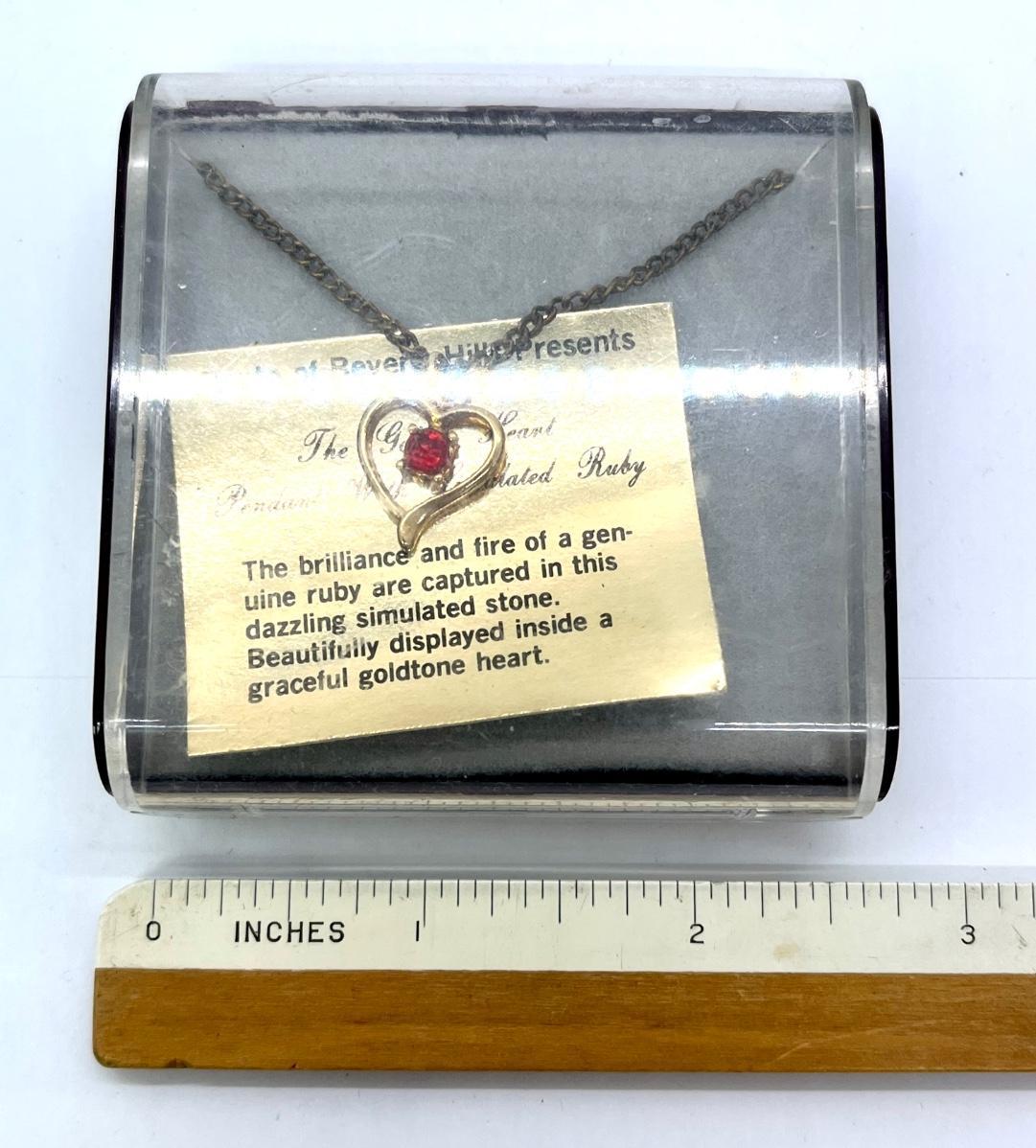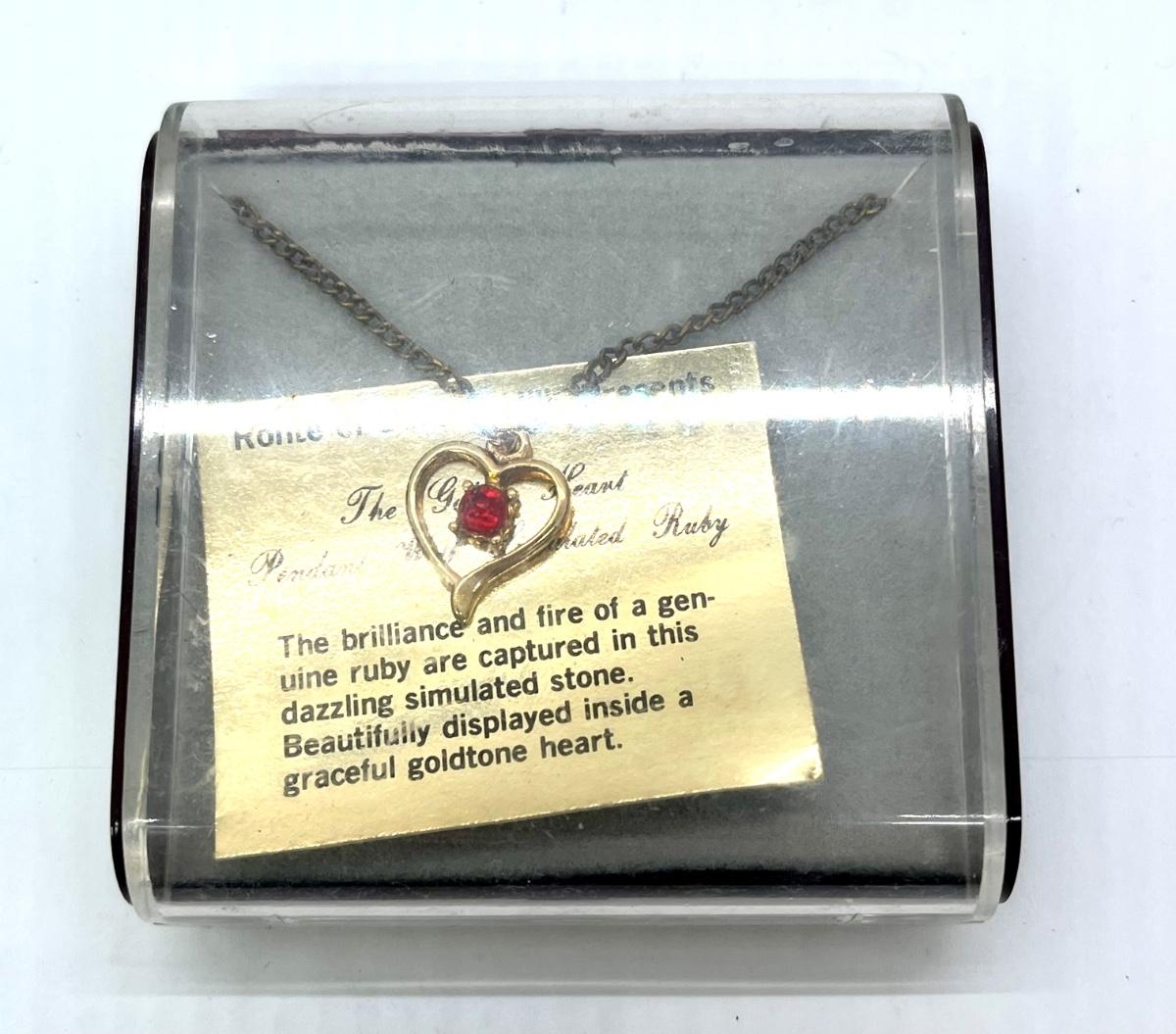 Ronte of Beverly Hills Golden Heart Pendant with Simulated Rub Necklace with box