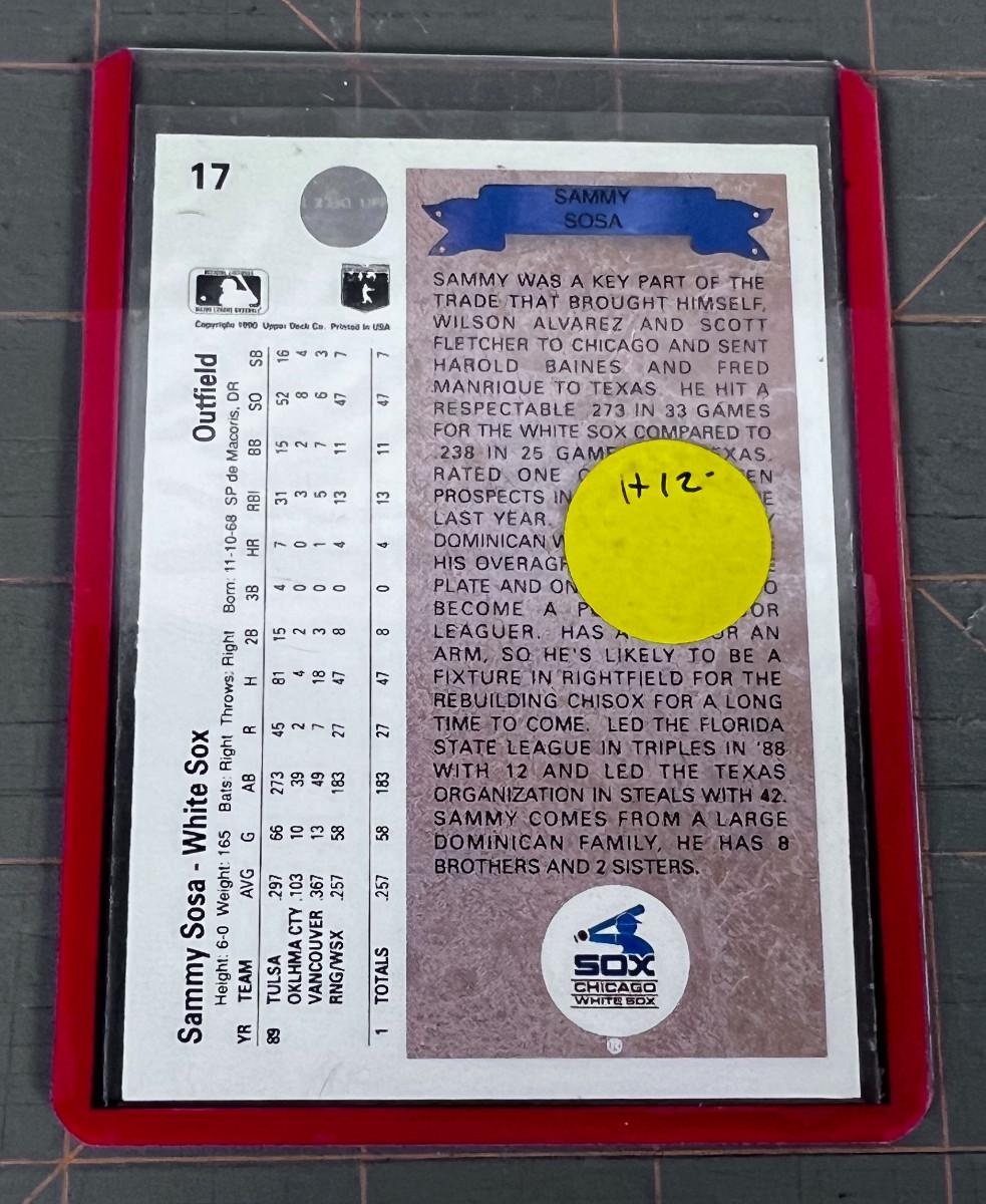 ROOKIE Err Card. Sammy Sosa 1990
