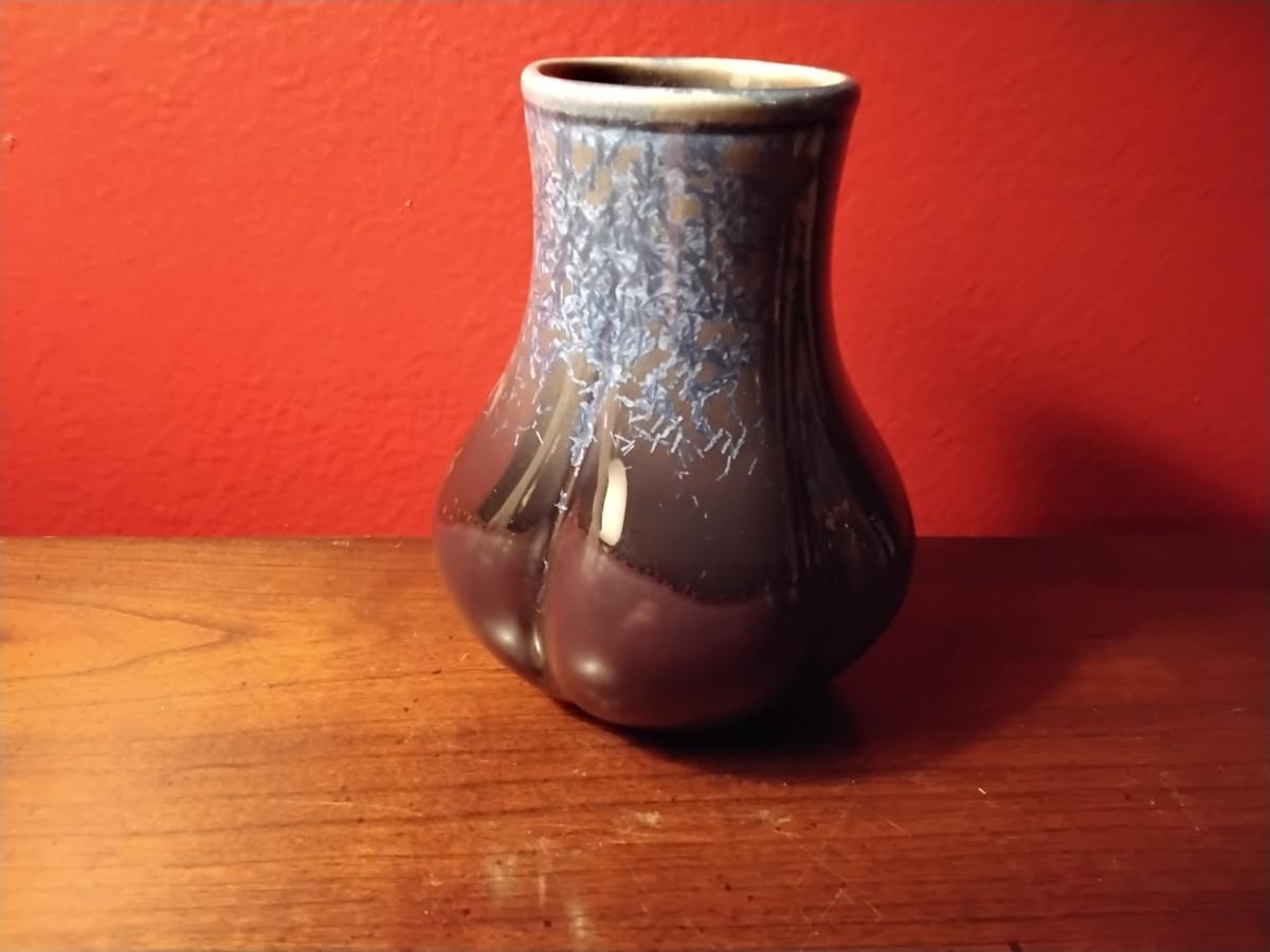 Sweet sweet Clove Vase, created by artist Kataro Shirayamadani in 1928, was named for and inspired by the shape of a garlic clove. Vase Measures 4.75" Tall by 3.75" wide. No chips, cracks or crazing. A gorgeous piece. Height approx. 4.5"