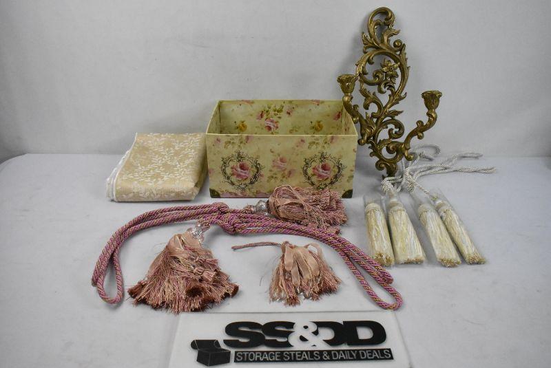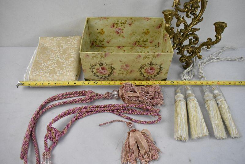 Room Decor: Tassels, Sconce, Decorative Box, and Fabric