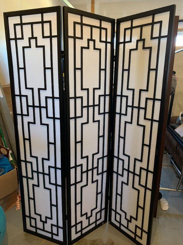 TWO AVAILABLE. Each measures 70.5" tall, and each panel is 17" wide. One of the dividers has a small tear in it as pictured, not particularly noticeable unless you are looking at it. Perfect condition one is $40, one with tear is $30.