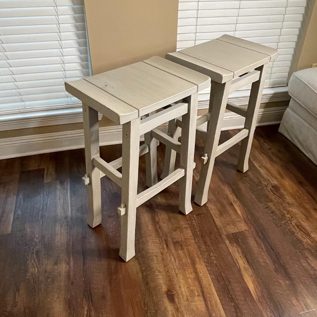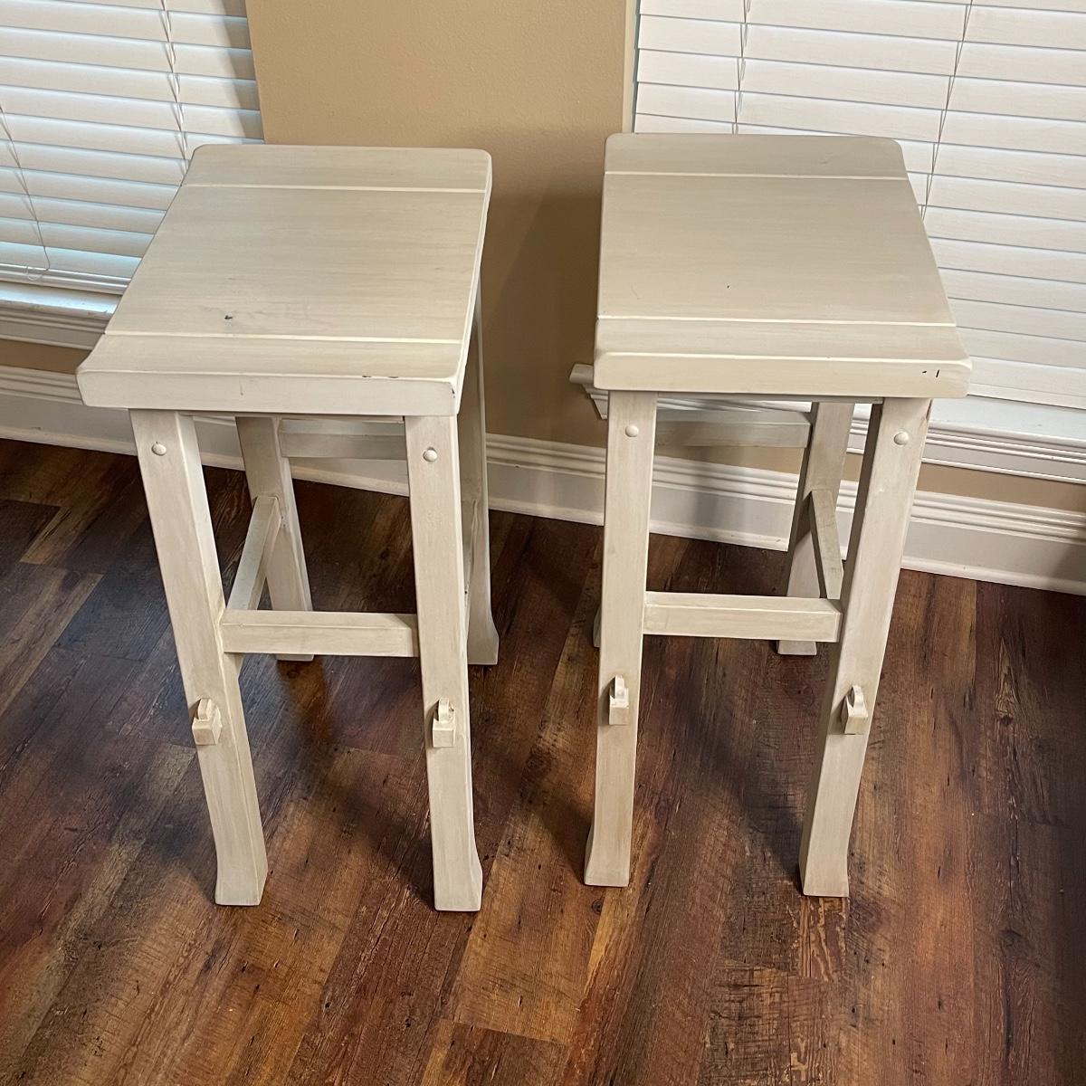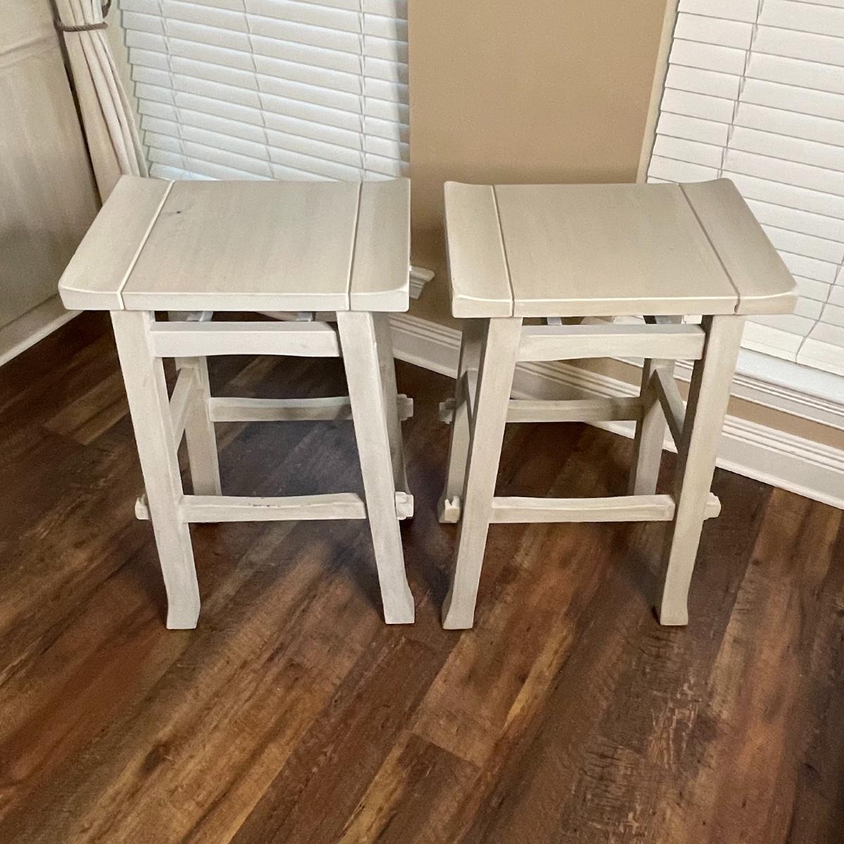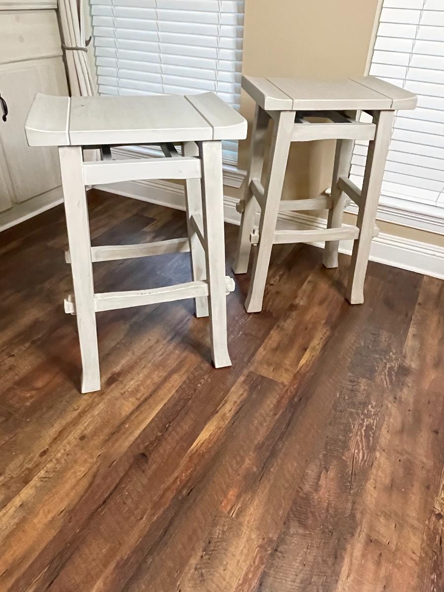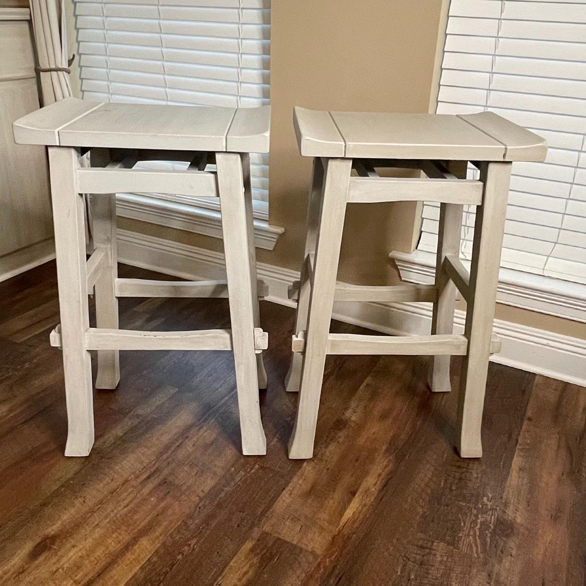 Roomy Pair of Gray Painted Bar Stools