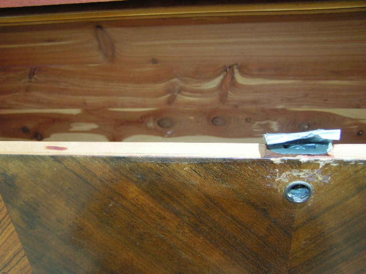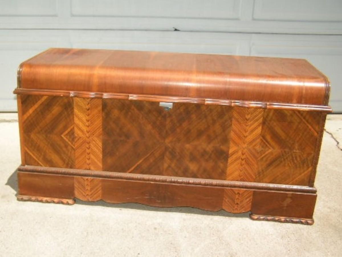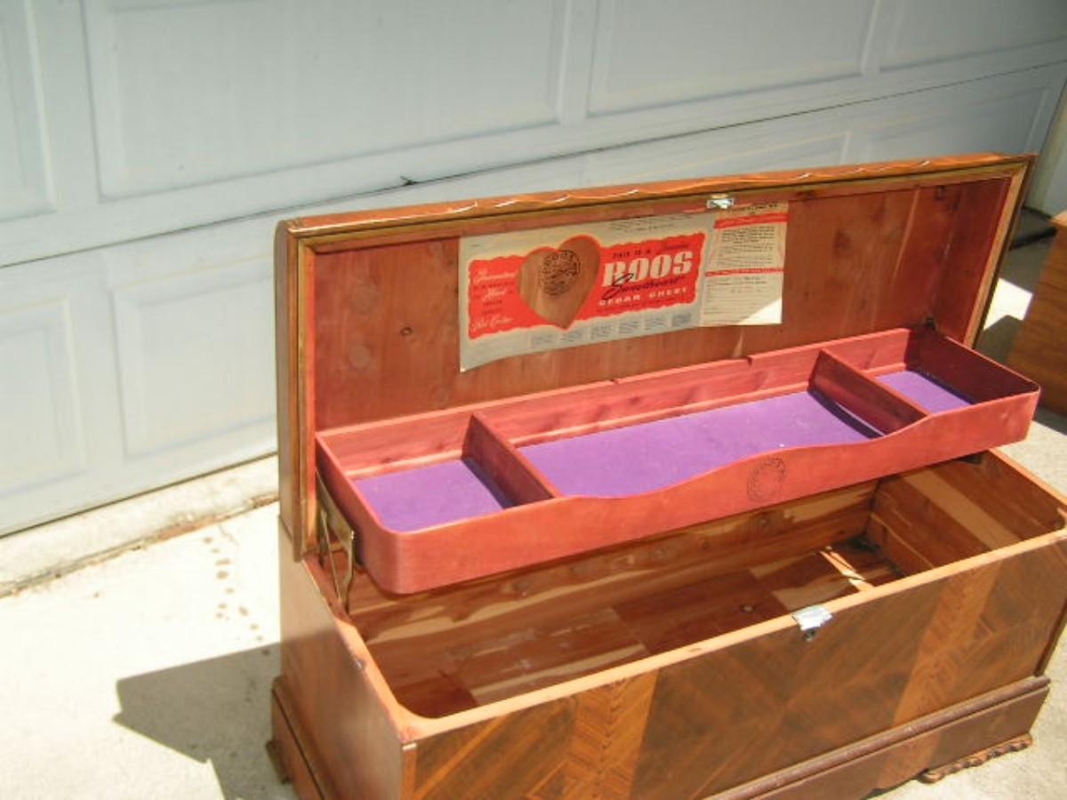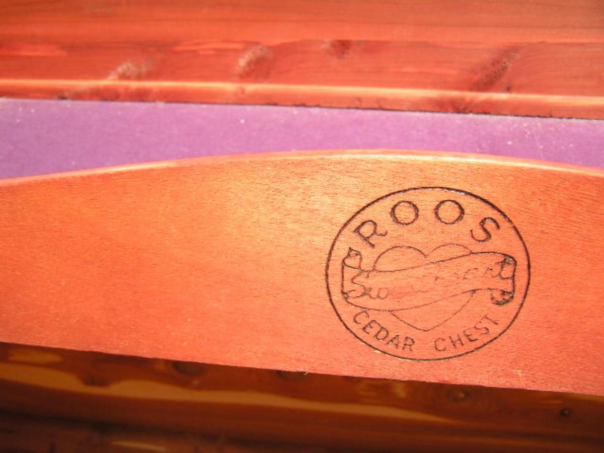 ROOS cedar chest. Beautiful intricately inlaid pattern front.
