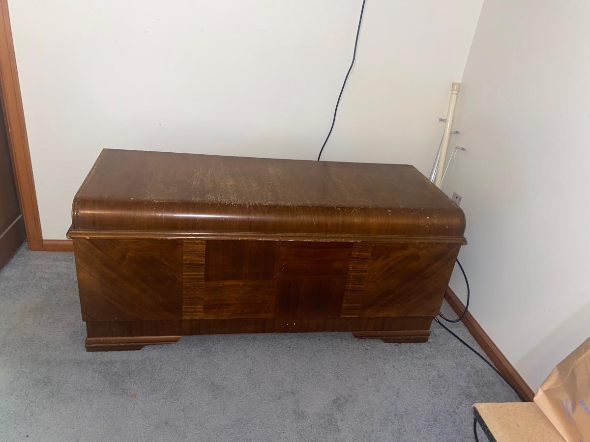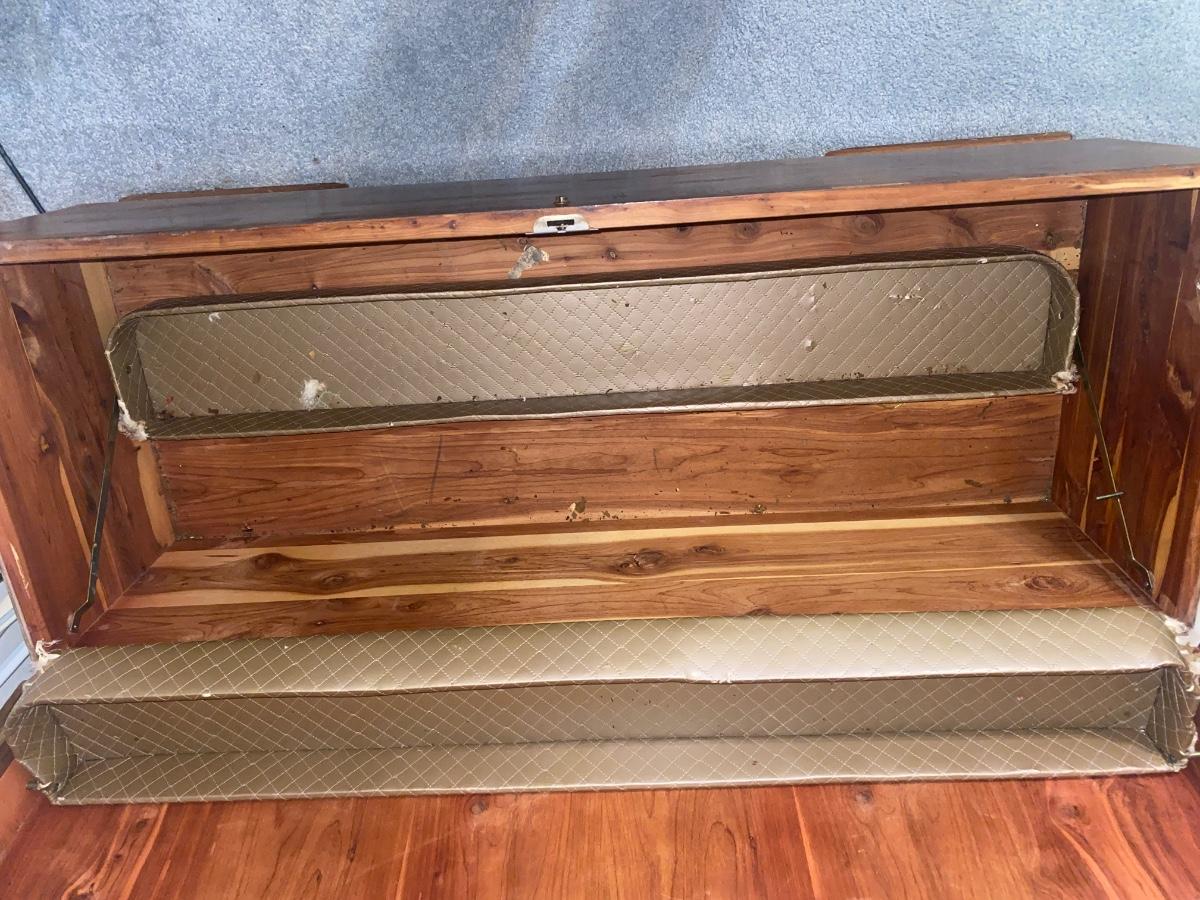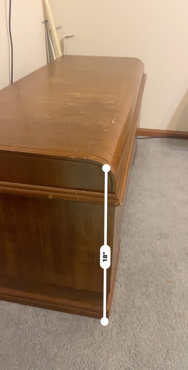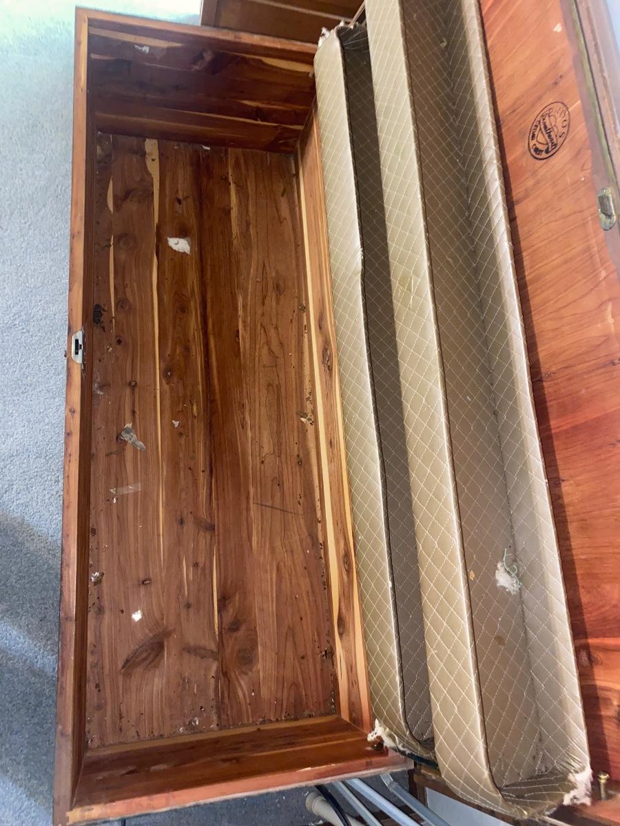 There is a loss of finish on the top but this is a beautiful old piece. Could not locate the key.