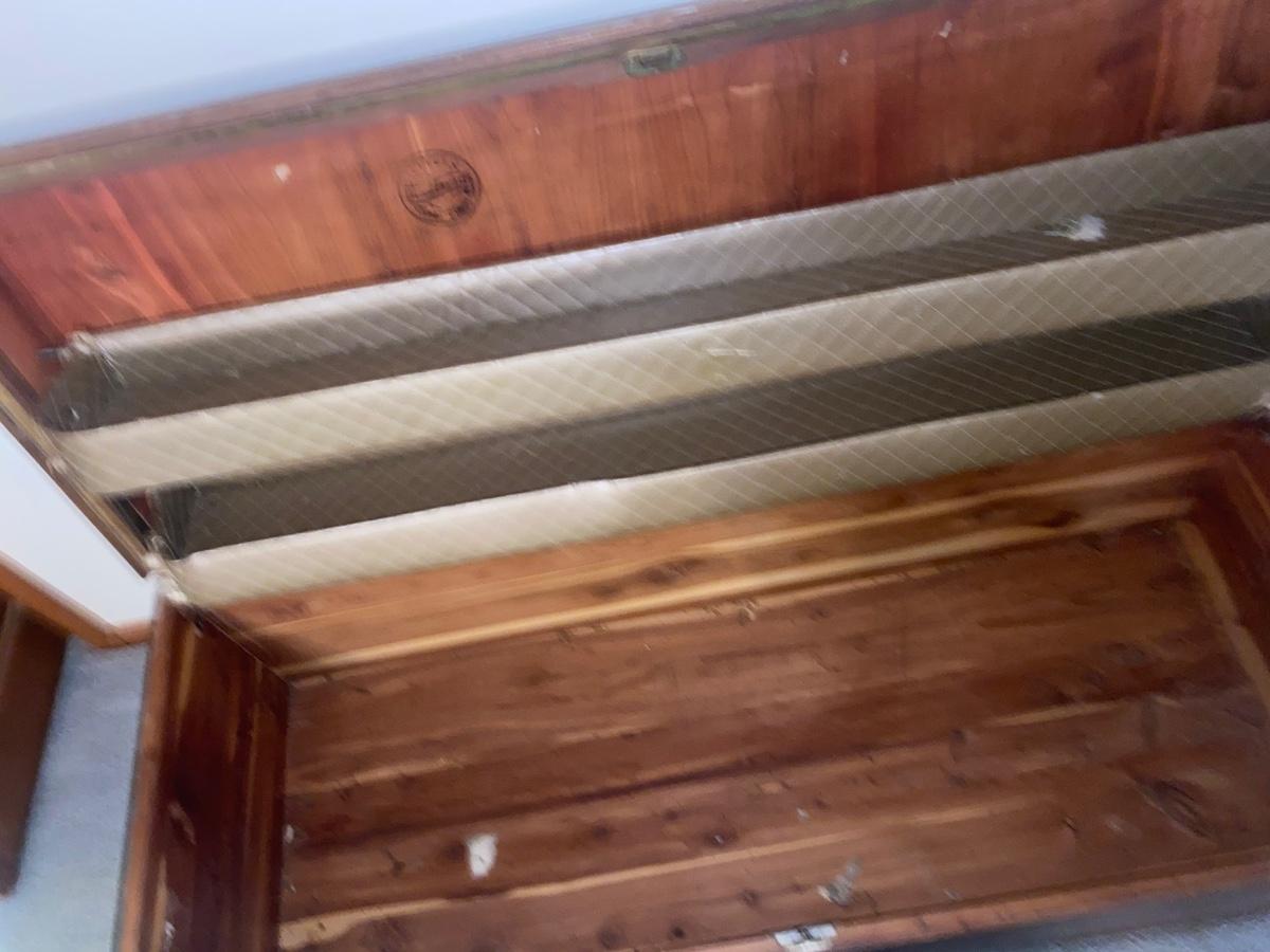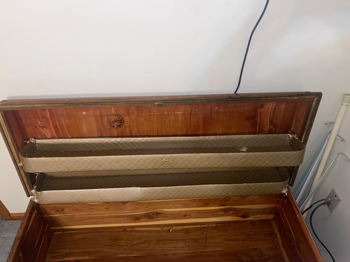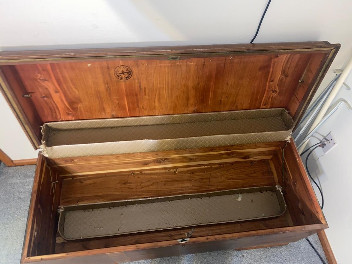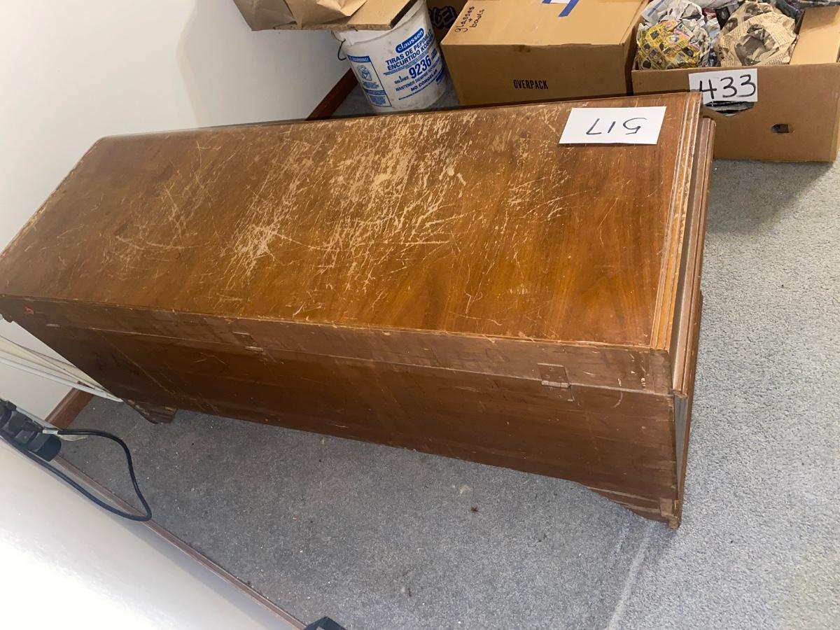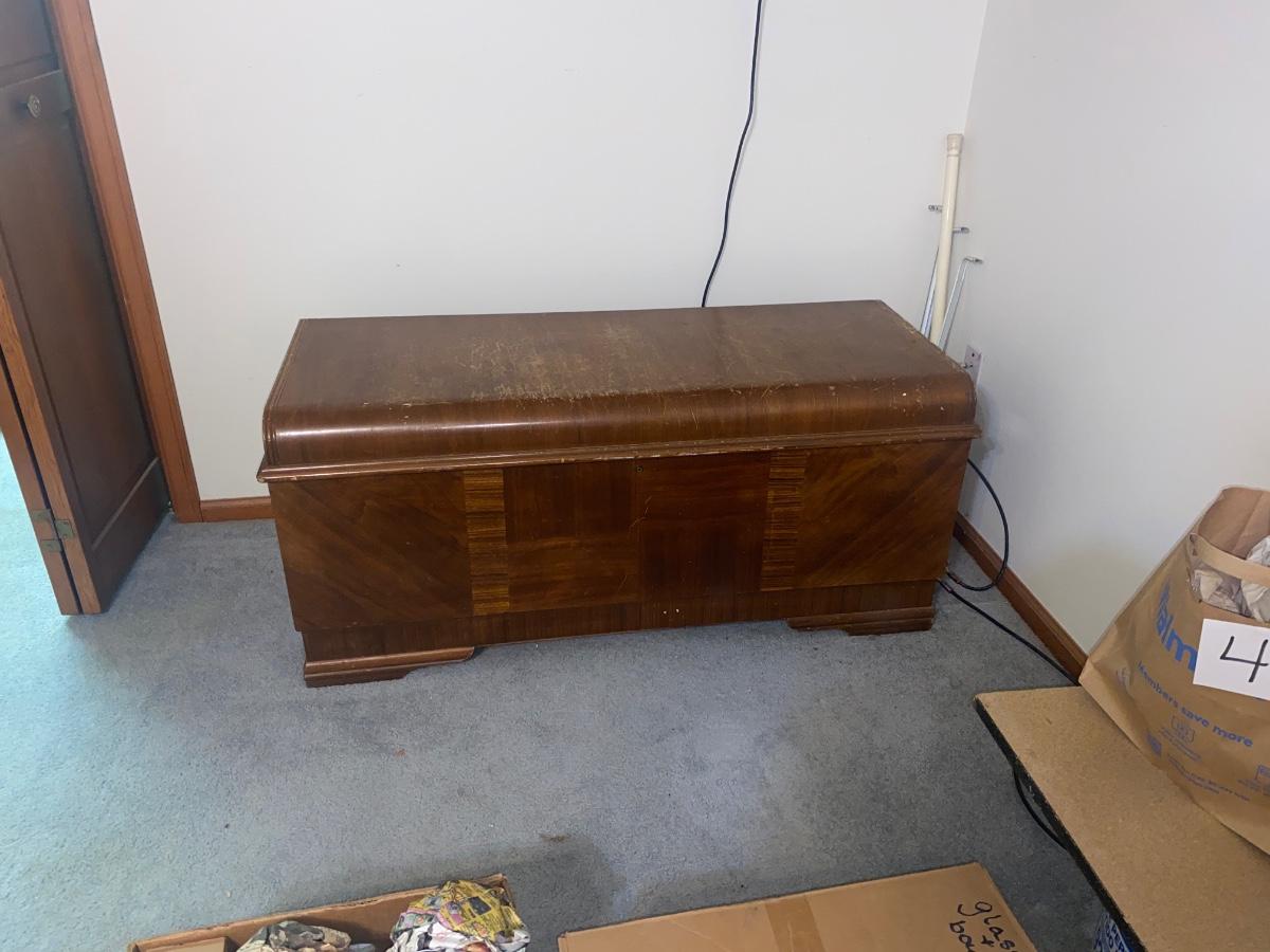There is a loss of finish on the top but this is a beautiful old piece. Could not locate the key.
