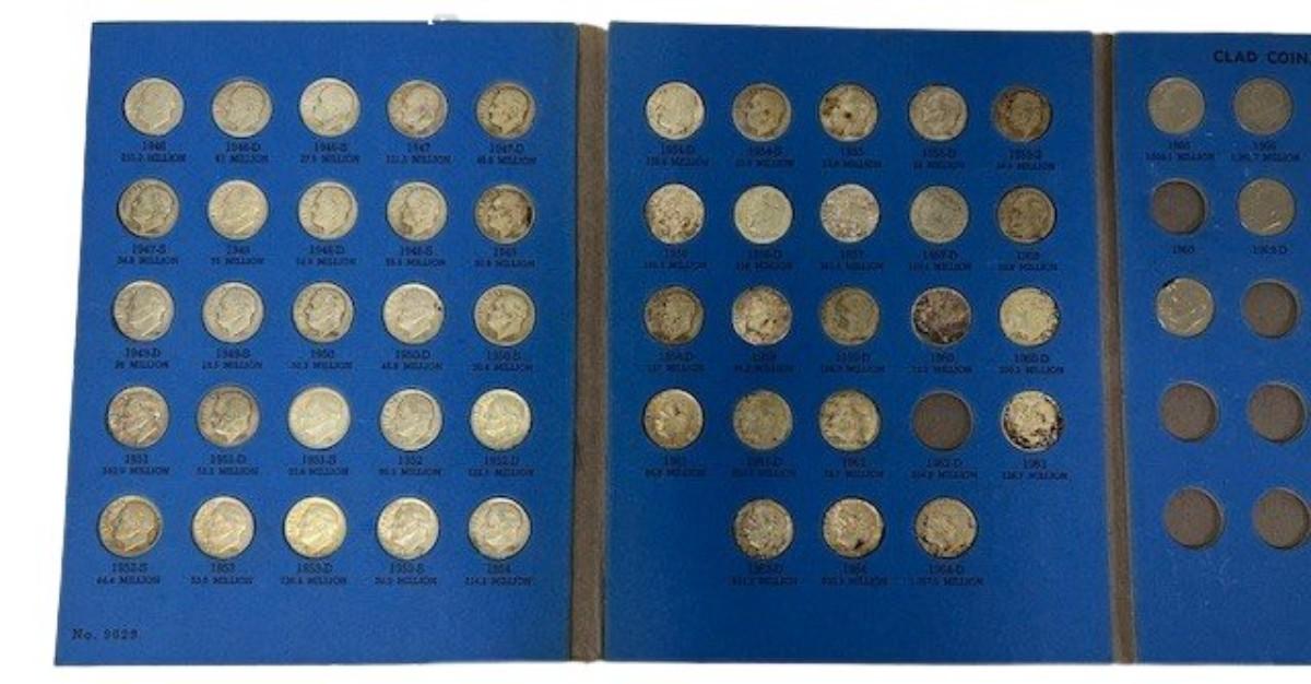 **WIRE TRANSFER IS REQUIRED IF SHIPPED.** Dates range from 1946 to 1964. Total of 58 pieces. Silver content is 90%. [GL]