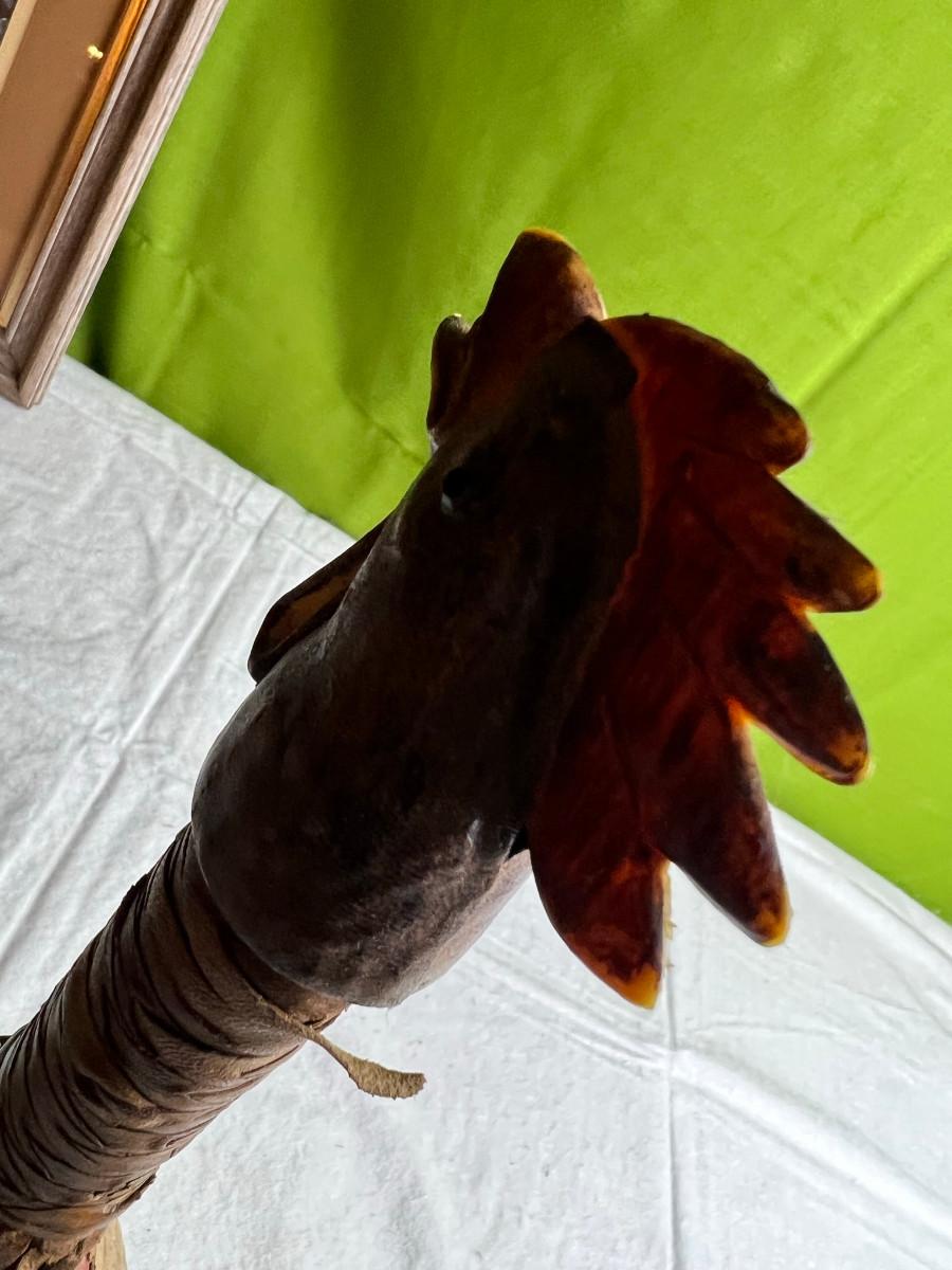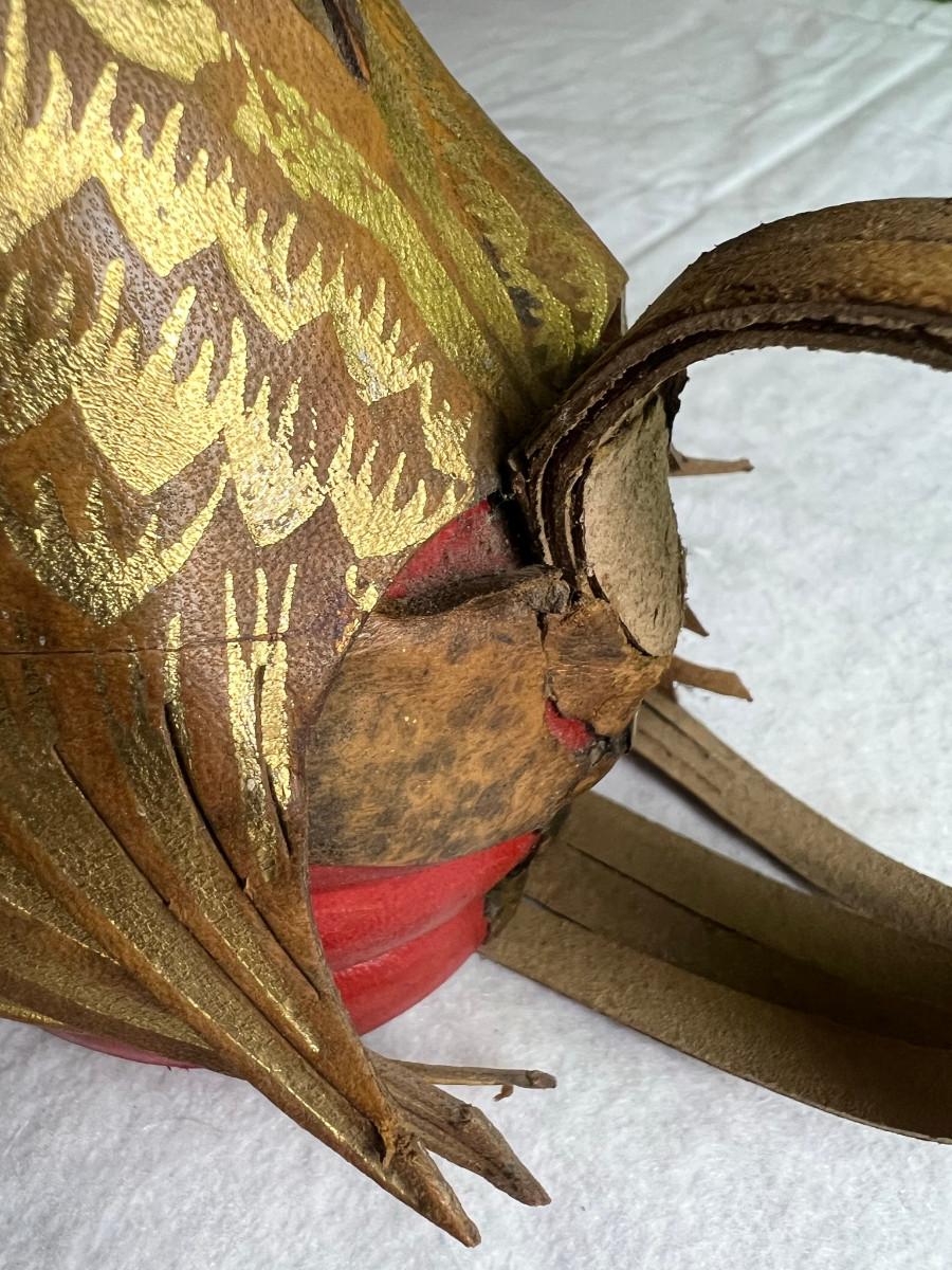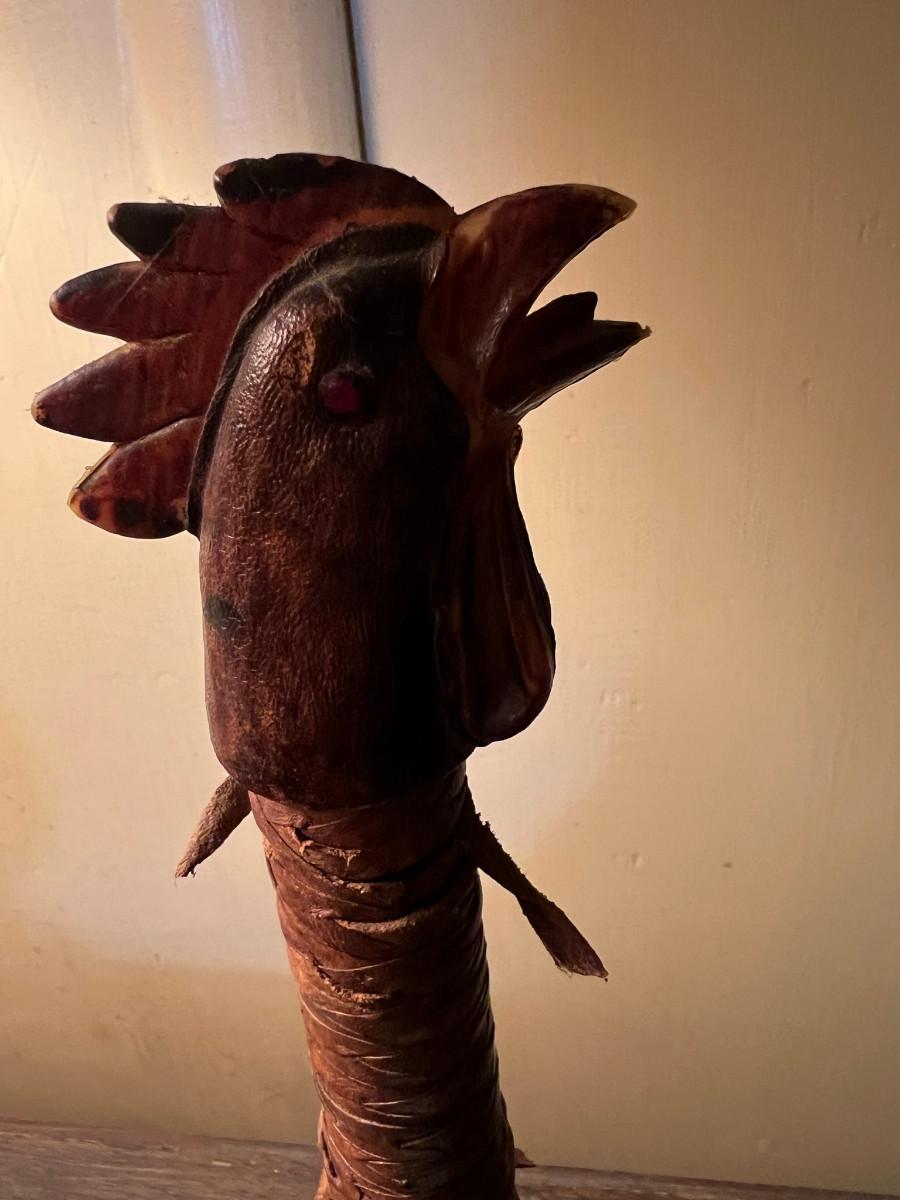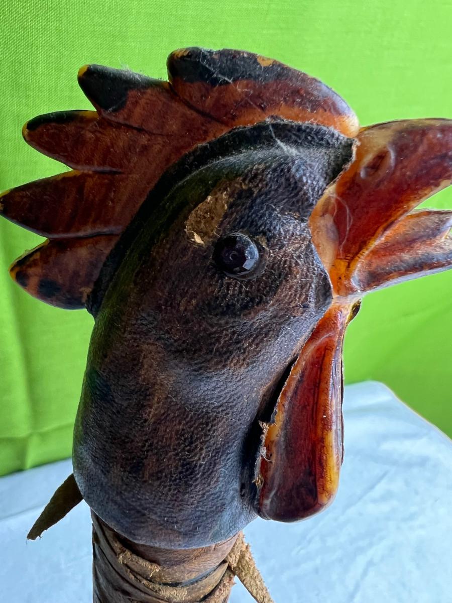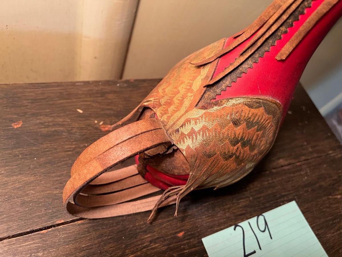 Rooster statue with leather accents 16" x 8" cool looking bird